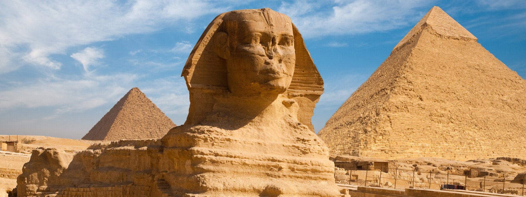 Nach dem Frühstück Fahrt nach Gizeh, im äußersten Südwesten der Hauptstadtmetropole, an den Rand der Wüste. Sie besichtigen auf dem gewaltigen Pyramidenplateau zunächst die antiken Königsgräber mit der davor wachenden Sphinx-Statue. Nach dem Mittagessen geht es auf einer geführten Tour durch das größte archäologische Museum der Welt. Vor dem Panorama der Pyramiden zeigt Ihnen Ihr Reiseführer die herausragenden Exponate der pharaonischen Geschichte mit der großartigen Tutanchamun Ausstellung. Anschließend erhalten Sie ausreichend Zeit zum Besuch weiterer Ausstellungsräume.