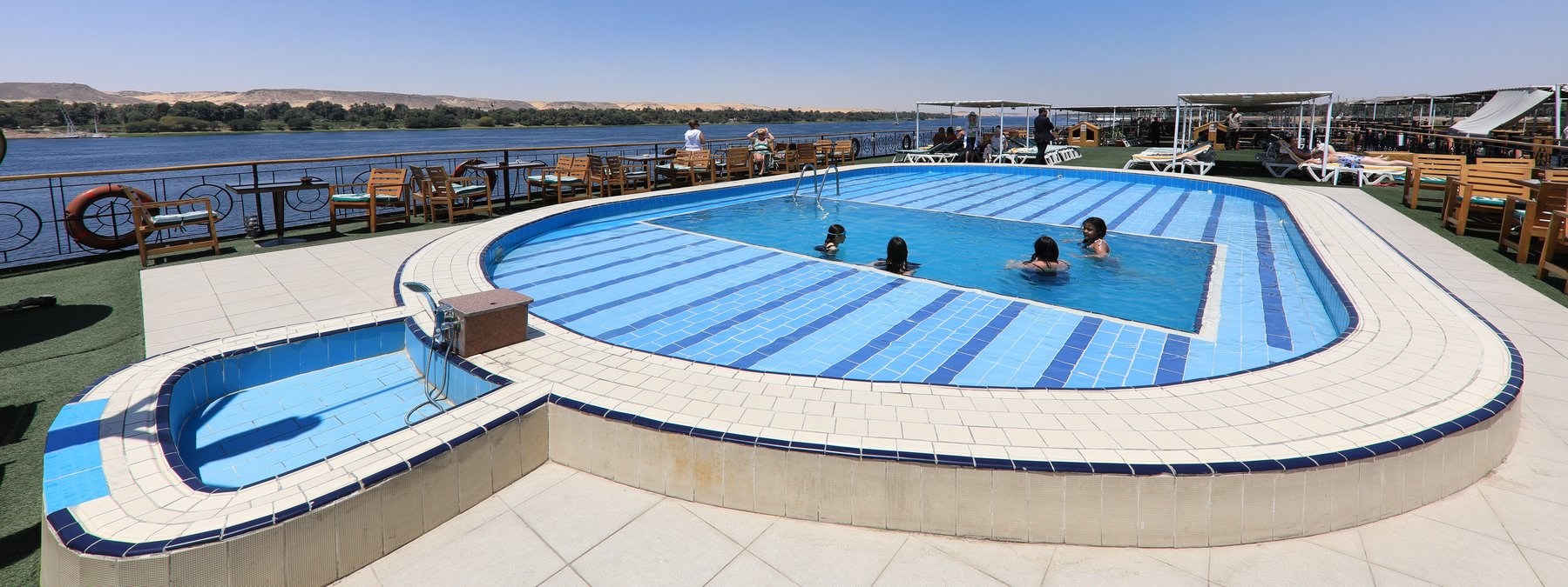 Luxor und Assuan an der Nilpromenade und in Kairo im Stadtteil Maadi. Je nach Aufkommen kann es an den Anlegestellen dazu kommen, dass mehrere Nilschiffe nebeneinander liegen, sodass die Sicht behindert sein kann und Geräusche/Gerüche von Nachbarschiffen nicht ausgeschlossen sind.