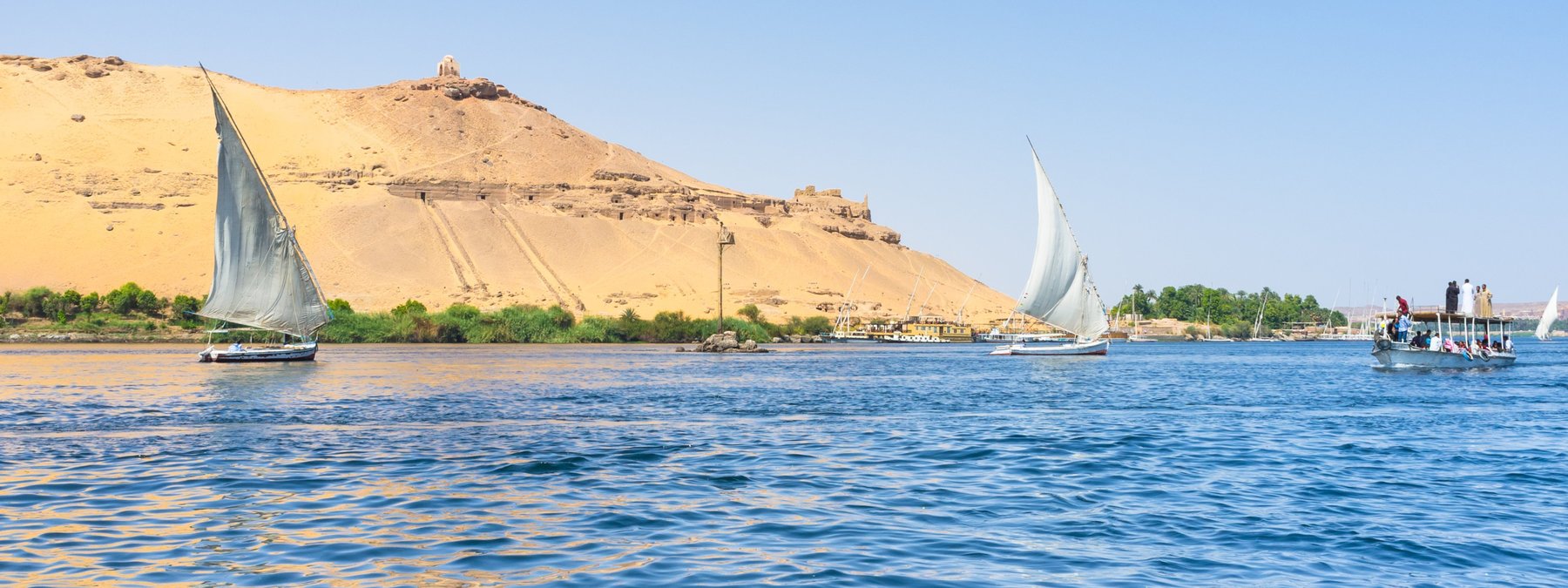 Assuan, die wunderschön gelegene Stadt am Nilkatarakt und einstiges Tor zum Reich der Nubier, verzaubert durch zahlreiche kleine Inseln mit dem Naturreservat. Schon Agatha Christie konnte der Faszination des Ortes nicht wiederstehen, als sie auf der Terrasse des berühmten Old Cataract Hotels ihren Bestseller-Roman verfasste. Vormittags besuchen Sie vor den Toren der Stadt den Staudamm des gewaltigen Nassersees, besichtigen anschließend auf der Insel Agilkia den Philae-Tempel und sehen im antiken Steinbruch den unvollendeten Obelisk. Am Nachmittag unternehmen Sie eine Bootsfahrt mit einer klassischen Segelfeluke (bei Windstille Motorboot) zwischen den idyllischen Nilinseln. Dabei sehen Sie das Aga-Khan-Mausoleum, den Nilometer und das Old Cataract. Wer möchte kann zur Teestunde in exponierter Lage oberhalb des Nilkatarakts in den Garten einer Hotelanlage einkehren, um die einzigartige Atmosphäre mit ganz besonderer Aussicht zu genießen (nicht inklusive, Reservierung vor Ort. Tea Time Hotel Basma € 45,-, Tea Time Hotel Old Cataract € 65,-).