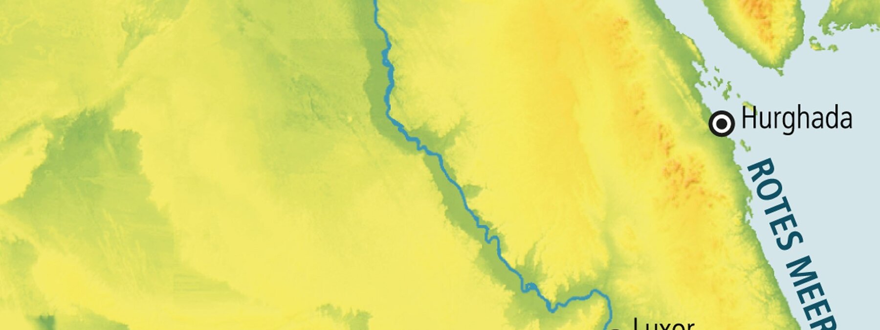 Luxor und Assuan an der Nilpromenade und in Kairo im Stadtteil Maadi. Je nach Aufkommen kann es an den Anlegestellen dazu kommen, dass mehrere Nilschiffe nebeneinander liegen, sodass die Sicht behindert sein kann und Geräusche/Gerüche von Nachbarschiffen nicht ausgeschlossen sind.