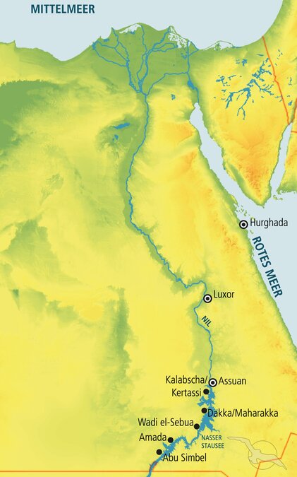 Ihr Schiff liegt heute den ganzen Tag an der Anlegestelle von Abu Simbel. Am Vormittag haben Sie ausreichend Gelegenheit mit Ihrem Reiseführer diesen magischen Ort zu erkunden. Die beiden Tempel Ramses II. und zu Ehren seiner Gemahlin Nefertari gehören neben den Pyramiden von Gizeh zu den Höhepunkten pharaonischer Baukunst. Am Abend Gelegenheit an der Sound & Light Show vor der Kulisse der großartigen Tempelanlage teilzunehmen (nicht inklusive, Ticketerwerb vor Ort ca. ca. € 48,-).