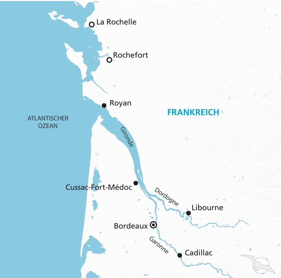 In diesem Jahr bieten wir eine neue Reise durch Westfrankreich mit MS Cyrano de Bergerac an. In Bordeaux, auch Paris des Südens genannt, beginnt Ihre Traumreise und führt Sie entlang der Gironde, Garonne und Dordogne zu den Highlights rund um die Weinregion Bordeaux. Medoc und Cadillac bieten hervorragende Voraussetzungen für den Weinbau, einen leckeren Wein sollten Sie unbedingt probieren. Genießen Sie Ihren Aufenthalt in dem bekannten Badeort Royan, mit der Möglichkeit zu Ausflügen nach Rochefort und La Rochelle. Auch Saint Emilion hat einige kulturelle Highlights zu bieten. Ihre zuvorkommende Crew wird Sie an Bord Ihres wunderschönen Schiffes mit kulinarischen Highlights ganz besonders verwöhnen. Lassen Sie sich überraschen.