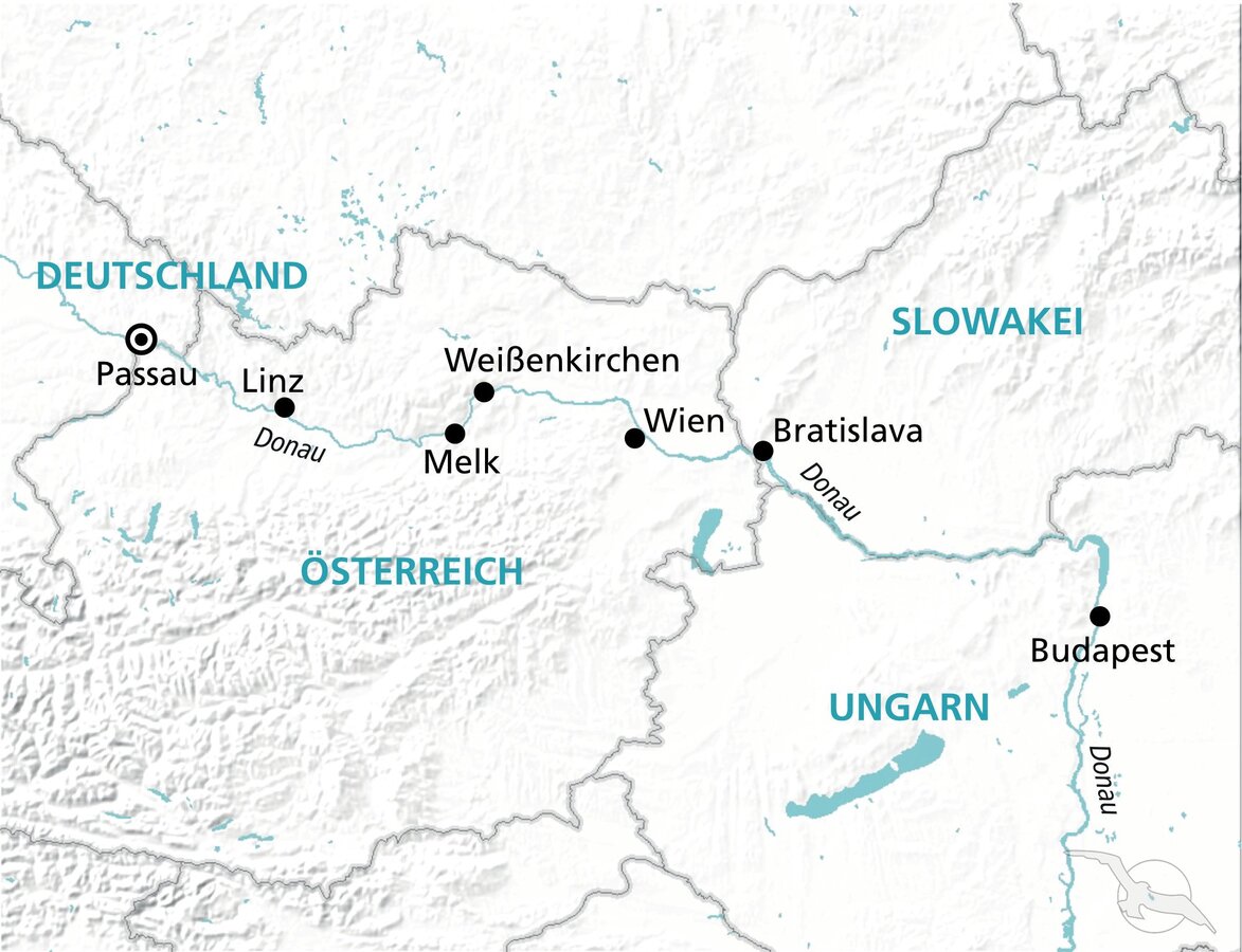 Bei individueller Bahnanreise: In Passau kann ein Transfer vom Schiff zum Bahnhof am Ausschiffungstag für € 10,- pro Person vorab gebucht werden.