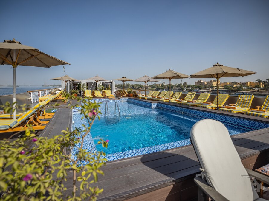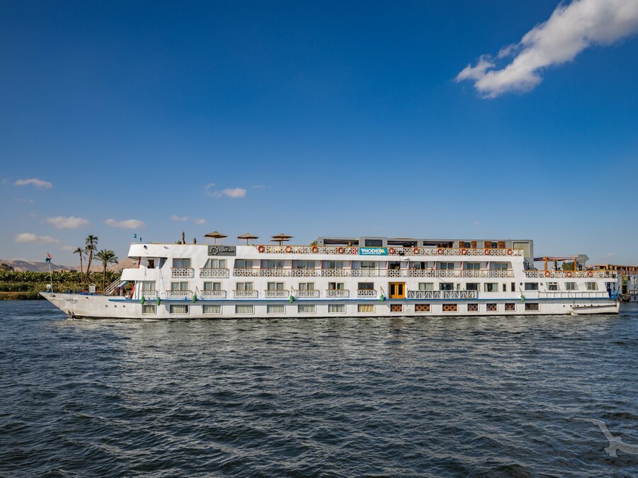 Das 2019 umgebaute und neu konzipierte Nilkreuzfahrtschiff MS Royal Vision ist durch seinen geringen Tiefgang ideal geeignet, auch in der Niedrigwasserzeit der Wintermonate die Kreuzfahrt auf der gesamten Nilstrecke zwischen Kairos Pyramiden und den Tempeln Oberägyptens durchzuführen. Phoenix Reisen chartert das First-Class-Schiff (Landeskategorie 5 Sterne de Luxe) exklusiv von der örtlichen Agentur Dynasty Travel und hat dadurch, wie gewohnt, Einfluss auf Organisation und Durchführung aller Landausflüge. Das Schiff ist geschmackvoll, mit orientalischen Stilelementen, eingerichtet und erstklassig ausgestattet, verfügt über vier Decks mit einem Eingangsbereich inklusive Rezeption, Boutique, Massagebereich, Salon mit Bar, Restaurant (eine Tischzeit) sowie Wäscheservice. Auf dem Sonnendeck befindet sich die Sky Lounge mit Bar, Sitzgelegenheiten mit ausreichend Schattenplätzen (Sonnensegel/-schirme) und Sonnenliegen rund um den Swimmingpool (Badetücher inklusive) sowie eine Fitnessecke. WLAN im öffentlichen Bereich kostenfrei (Empfang abhängig vom Fahrgebiet). Unsere Deutsch sprechende Reiseleitung sowie gut ausgebildeten, lizensierten Reiseführer begleiten Sie während Ihrer gesamten Reise zu den Höhepunkten durchs Land der Pharaonen und stehen Ihnen an Bord jederzeit zur Verfügung. Bordwährung ist das Ägyptische Pfund (EURO wird akzeptiert).
