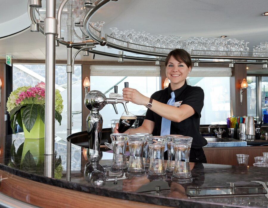 Zahlreiche Mitarbeiter in Küche und Restaurant sorgen täglich für Ihr leibliches Wohl an Bord. Genussvolle Menüs durch fest eingespielte Küchenteams werden für Sie zubereitet. "Essen, was das Herz begehrt" - Zahlreiche Mahlzeiten von früh bis spät - einschließlich Nachmittags-Kaffeezeit,
