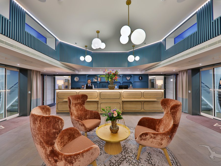 2026: Sie erhalten 1 Flasche Champagner, Kapitänsempfang, Begrüßungsüberraschung, Coppeneur-Pralinen, bevorzugte Information bei Ausflugsfreischaltung, 10% Rabatt auf TEfra-Gepäckbeförderung zum und vom Schiff (ab einer Reisedauer von 2 Tagen).
