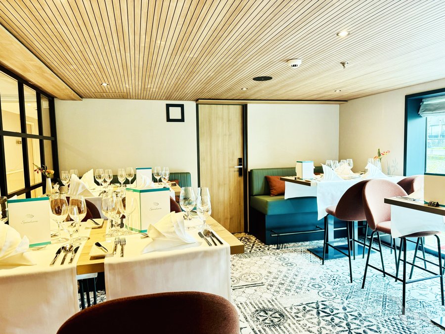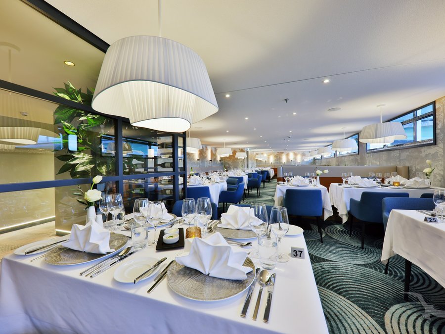 MS Amina verfügt über ein komfortables und zugleich gemütliches Restaurant. Ein aufmerksames Restaurant- und Küchenteam kümmert sich à la carte um Ihr kulinarisches Wohlergehen. Bei freier Tischplatzwahl bieten wir eine offene lange Tischzeit ohne feste Reservierung an. Zusätzlich steht Ihnen die "Trattoria Caminetto" im Heckbereich von 08:00 - 24:00 Uhr ohne Aufpreis zur Verfügung.
