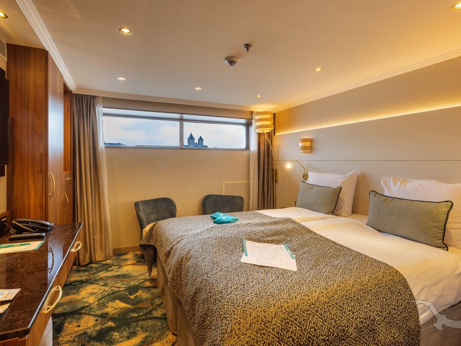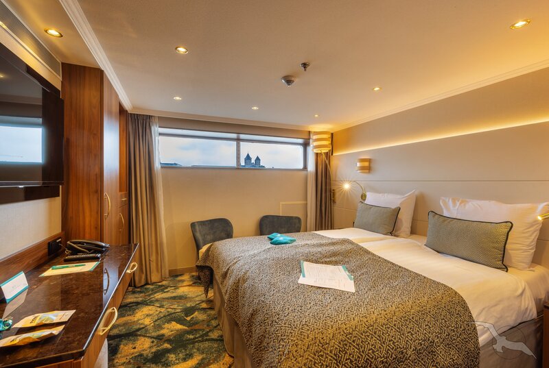 Alle Kabinen liegen außen und sind komfortabel und luxuriös eingerichtet mit kleinen Fenstern, die aus Sicherheitsgründen nicht zu öffnen sind. Die Betten lassen sich wahlweise als Doppel- oder Einzelbetten stellen. Die Kabinen dieser Kategorie liegen im hinteren Bereich des Schiffes, bei fahrendem Schiff verstärkte Maschinengeräusche.