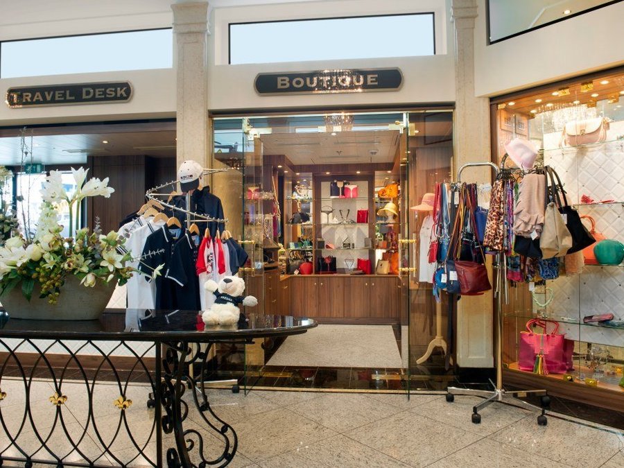 MS Anesha verfügt über eine kleine Boutique bzw. einen Shop mit einer Auswahl an Souvenirs, Bekleidungsstücken, Drogerieartikeln, Süßwaren und eventuell auch Schmuck und Kosmetika.