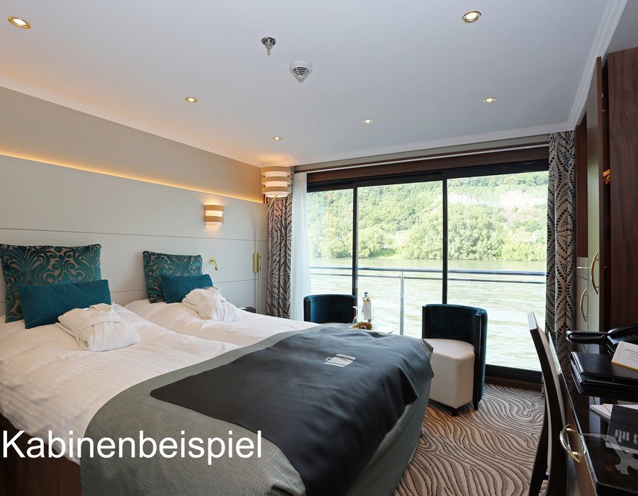 Alle Kabinen liegen außen und sind komfortabel und luxuriös eingerichtet und haben einen französischen Balkon.