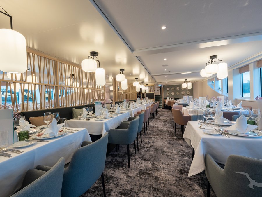 MS Antonia verfügt über ein komfortables und zugleich gemütliches Restaurant. Ein aufmerksames Restaurant- und Küchenteam kümmert sich à la carte um Ihr kulinarisches Wohlergehen. Zum Abendessen reservierte Plätze, Spezialitäten-Restaurant ohne Aufpreis.