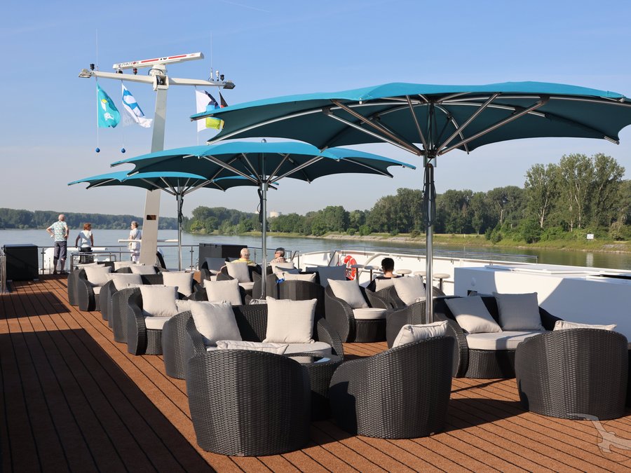 Auf bestimmten Flussabschnitten (z.B. Main, Neckar) sind zum Teil sehr niedrige Brücken zu passieren. Die Schiffsbesatzung trifft entsprechende Vorkehrungen, baut Reling und Windfang ab und versenkt die Brücke hydraulisch zur Gewährleistung einer sicheren Durchfahrt. Vorübergehend kann es zur Sperrung des Sonnendecks kommen. Das Betreten ist dann im Sinne Ihrer eigenen Sicherheit nicht möglich.