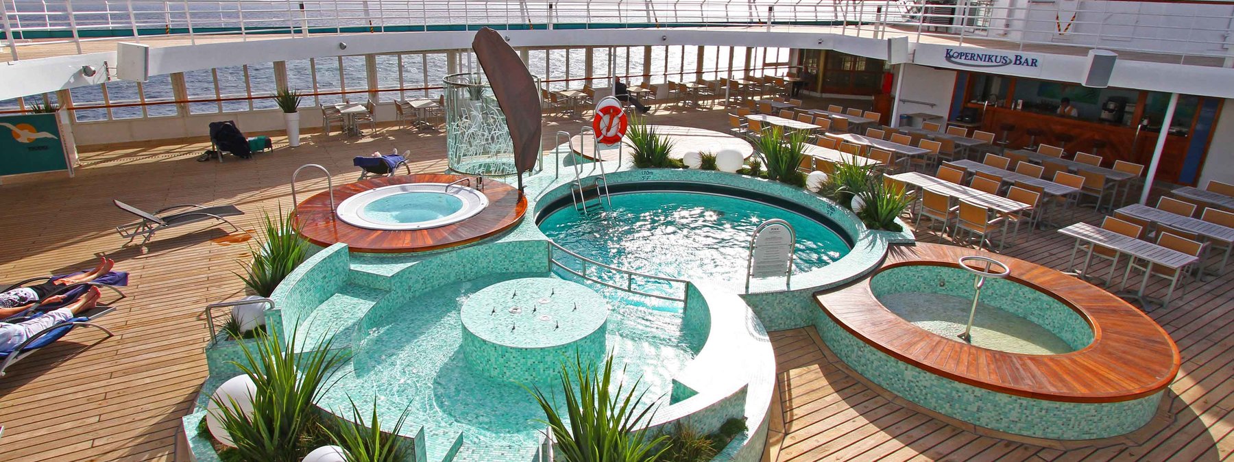 Im Wellness & Spa können Sie frische Energie schöpfen, Fitness-Center und Saunen nutzen sowie eine bunte Vielfalt an Massagen (gegen Gebühr) genießen. Des Weiteren für Sie an Bord: Beauty-Salon, Wäscherei und Waschsalon zur Eigennutzung, Bordhospital mit deutschem Arzt, Poolflächen mit Pool und Kopernikus Bar, Ausguck, geschützte Liegeflächen, Rundum-Promenade und Terrassen-Heck mit Phoenix Bar, Shuffleboard, Dart, Kicker und Tischtennis.