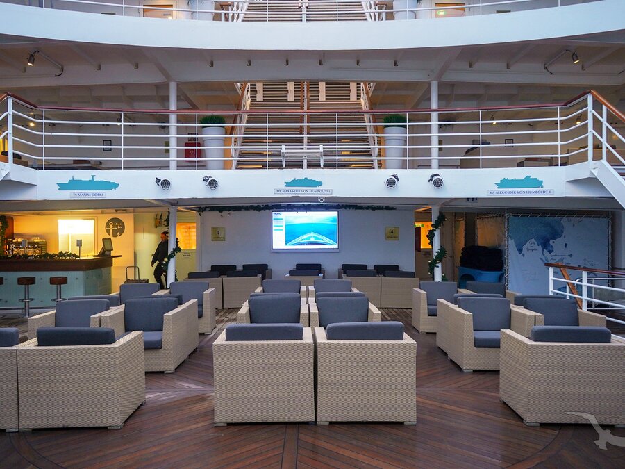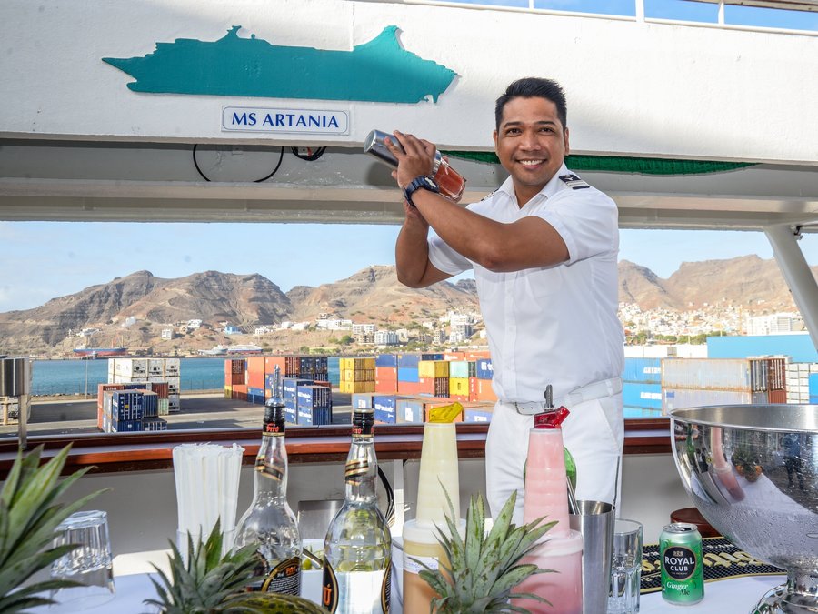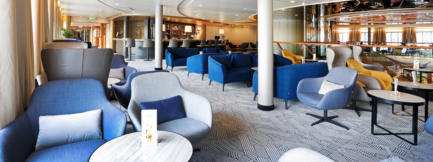 Gemütliche Treffpunkte für gute Unterhaltung gibt es an Bord von MS Artania zu Genüge. Die über zwei Decks offene, runde Hotel-Lobby mit der eleganten Harry‘s Bar ist einer dieser Orte. Den Lieblingsdrink genießen oder guter Unterhaltung folgen, können Sie auch in der stilvollen Casablanca Bar. Die beiden breiten Promenadengänge auf dem Salon-Deck verbinden alle wichtigen Einrichtungen. Die hoch oben gelegene Panorama-Pazifik-Lounge ist Ihr ganz persönlicher Logenplatz über dem Meer. Genießen Sie bei besten Ausblicken ein frisch gezapftes Bier oder tanzen zu Livemusik durch die Nacht. Zwischen der Show-Lounge »Atlantik« mit allabendlichen Veranstaltungsprogrammen und dem Restaurant »Artania« befinden sich Boutique, Bordkino, Kartenspielzimmer, Foto-/Videoshop und Internet-Ecke.