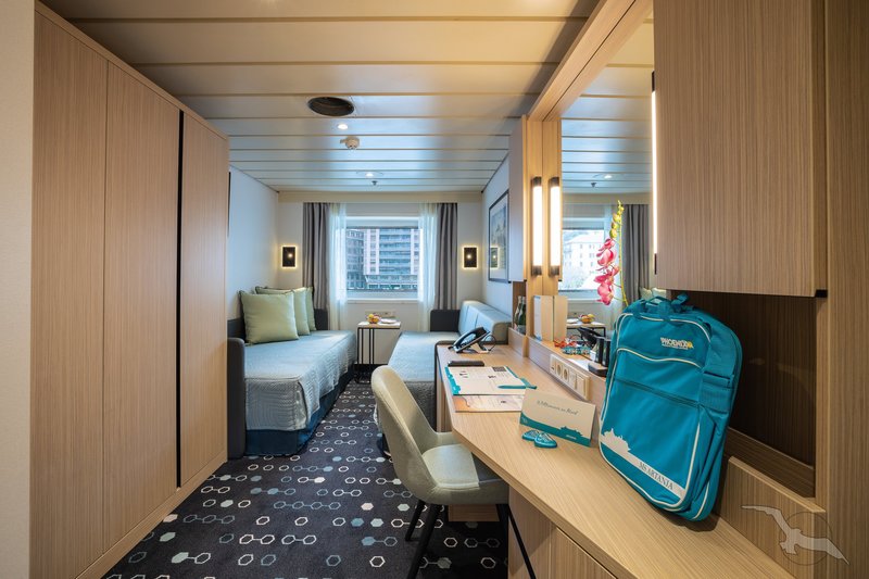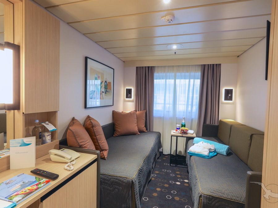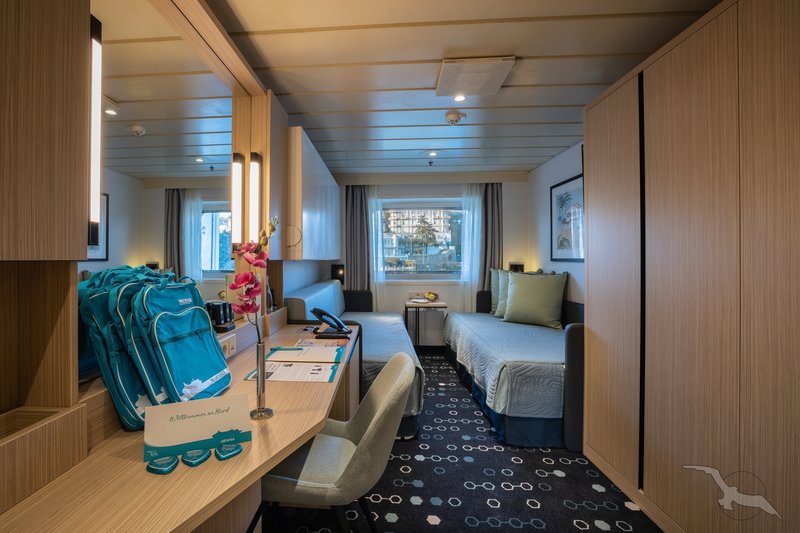 Diese 2-Bett-Kabinen liegen außen auf dem auf dem Saturn-/Orion- und Apollo-Deck und sind mit großem Fenster (nicht zu öffnen) ausgestattet.