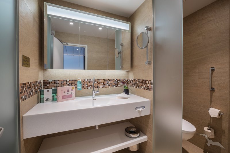 Es gibt 1 Beistellstich und 1 Stuhl, 2 große Schränke, Spiegelkommode mit mehreren Schubfächern, DuscheWC, Duschgel/Shampoo, Bademantel, Fön, SAT-TV (Empfang abhängig vom Fahrgebiet), individuell regulierbare Klimaanlage, Telefon, Minibar, Kaffeemaschine (inklusive Kapseln), Safe, (WLAN nicht inkl., Empfang abhängig vom Fahrgebiet).