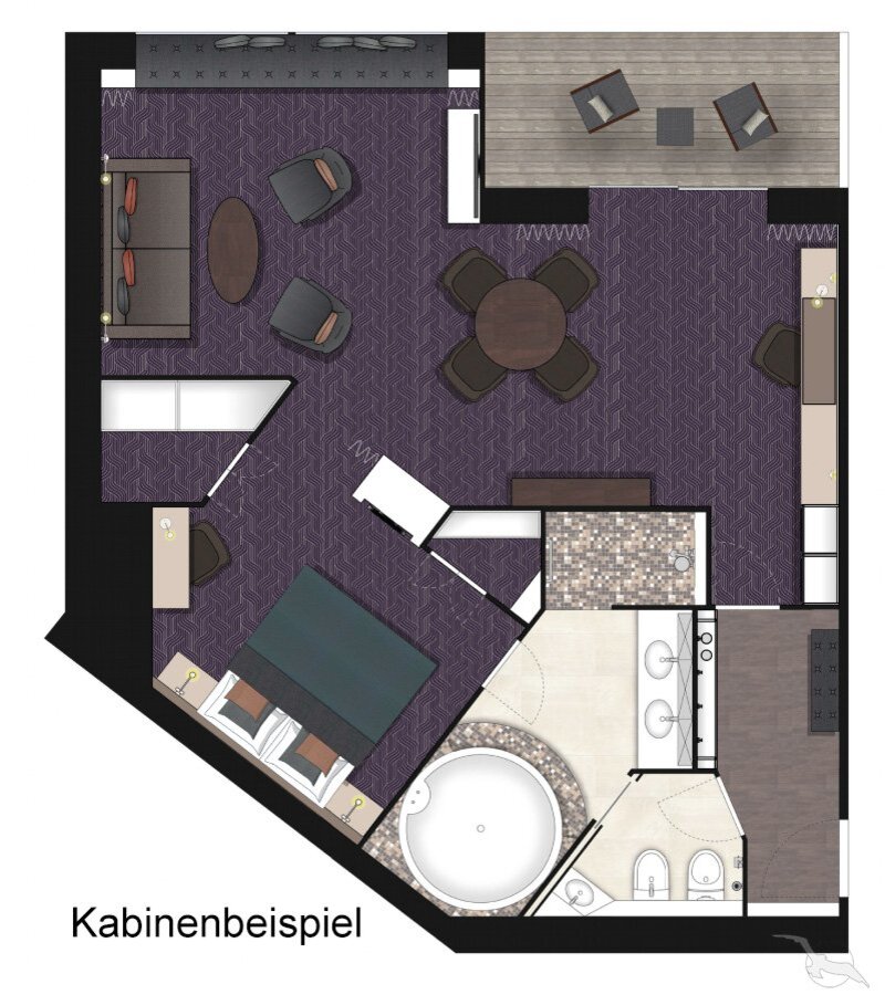 Kabinengröße ca. 50 qm inkl. Balkon.