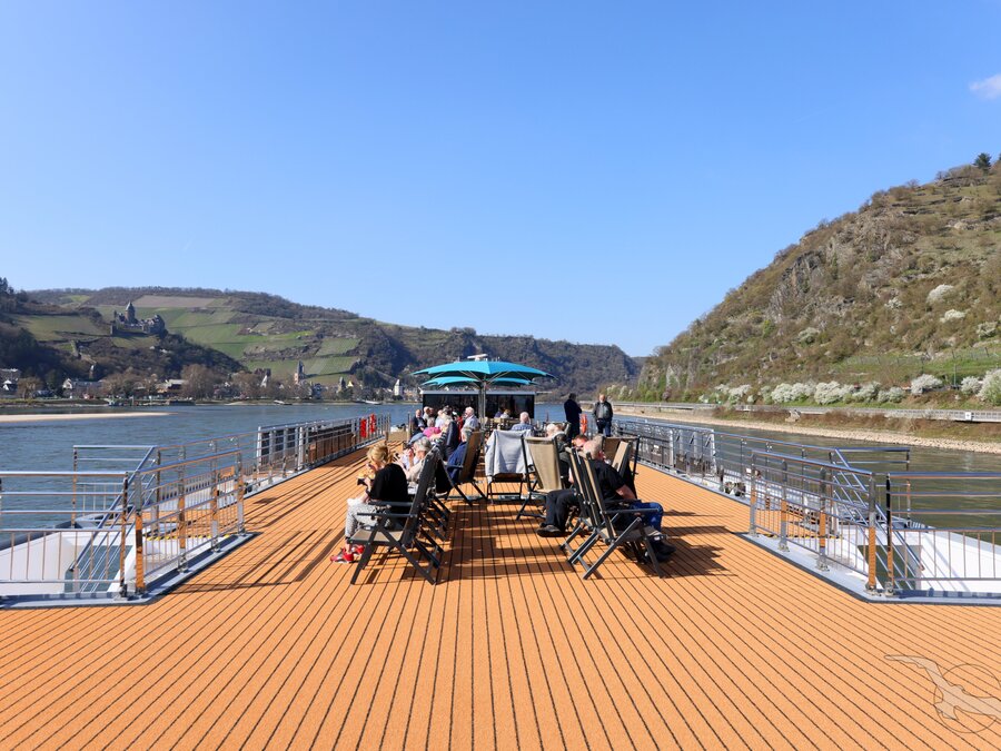 Auf bestimmten Flussabschnitten (z.B. Main, Neckar) sind zum Teil sehr niedrige Brücken zu passieren. Die Schiffsbesatzung trifft entsprechende Vorkehrungen, baut Reling und Windfang ab und versenkt die Brücke hydraulisch zur Gewährleistung einer sicheren Durchfahrt. Vorübergehend kann es zur Sperrung des Sonnendecks kommen. Das Betreten ist dann im Sinne Ihrer eigenen Sicherheit nicht möglich.