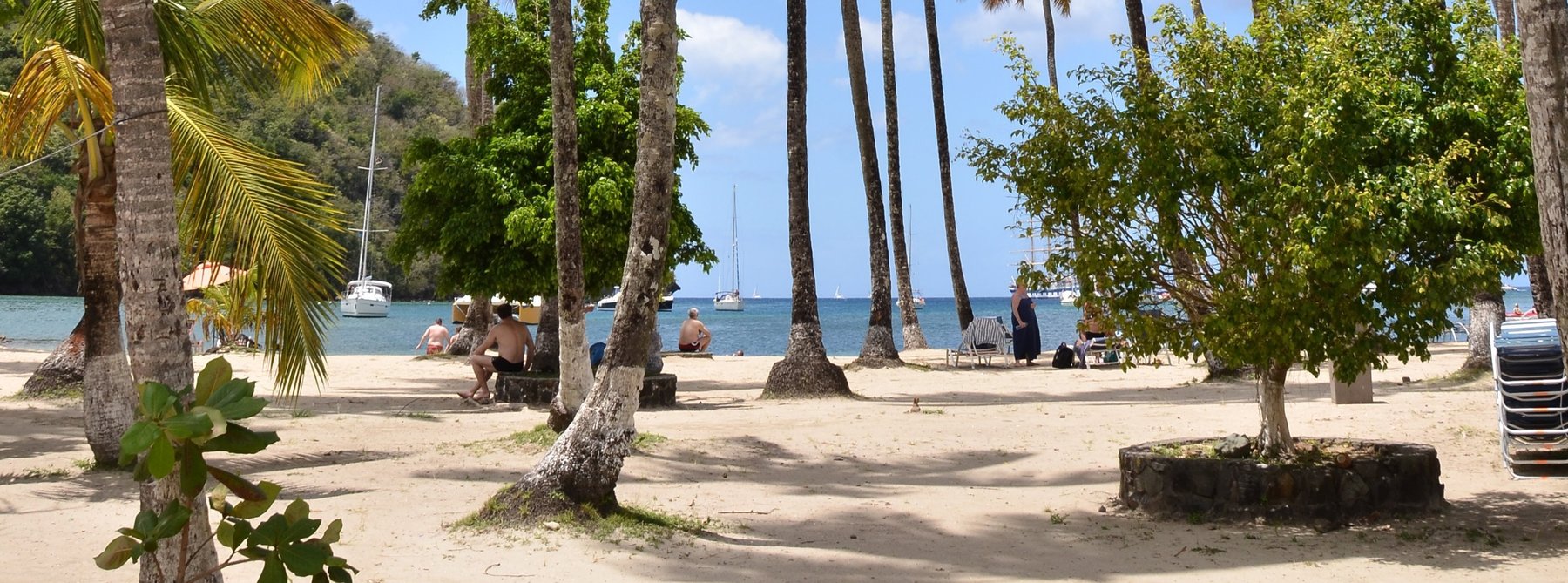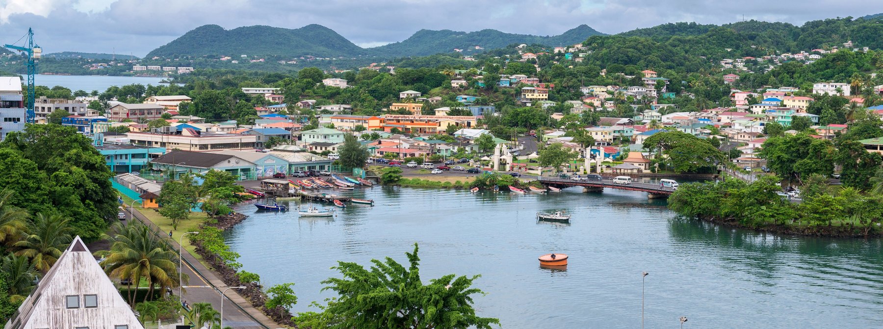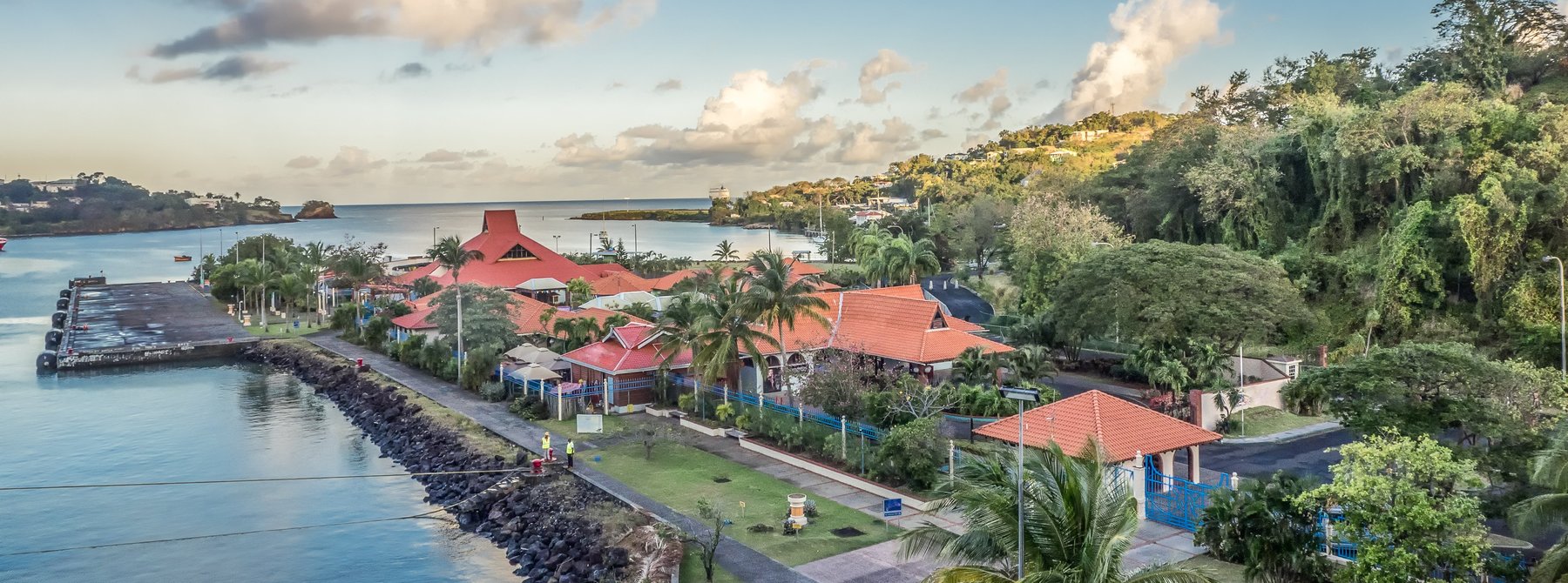 Panoramafahrt mit Kleinbussen durch Castries, Hauptstadt und zugleich Hafenstadt der Insel St. Lucia. Sie fahren in südlicher Richtung  und passieren das Regierungsgebäude im Kolonialstil aus dem 19. Jh., welches heute als Community College genutzt wird und nach dem 1979 in St. Lucia geborenen Wirtschaftsnobelpreisträger Sir Arthur Lewis benannt ist. Anschließend Fahrt zum Aussichtspunkt Morne Fortune außerhalb der Stadt mit prächtiger Aussicht über weite Teile der Insel. Kurzer Besuch im Batikstudio Caribelle. Danach passieren die Bananenplantagen im Cul-de-Sac Tal und fahren weiter Richtung Süden zur Marigot Bay. Mit der Fähre setzen Sie über zum Marigot-Beach-Club. Genießen ein kühles Erfrischungsgetränk und eine Badepause, bevor Sie nach gut 1 Std. Aufenthalt per Fähre und Bus zurück zum Schiff fahren.