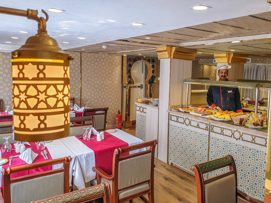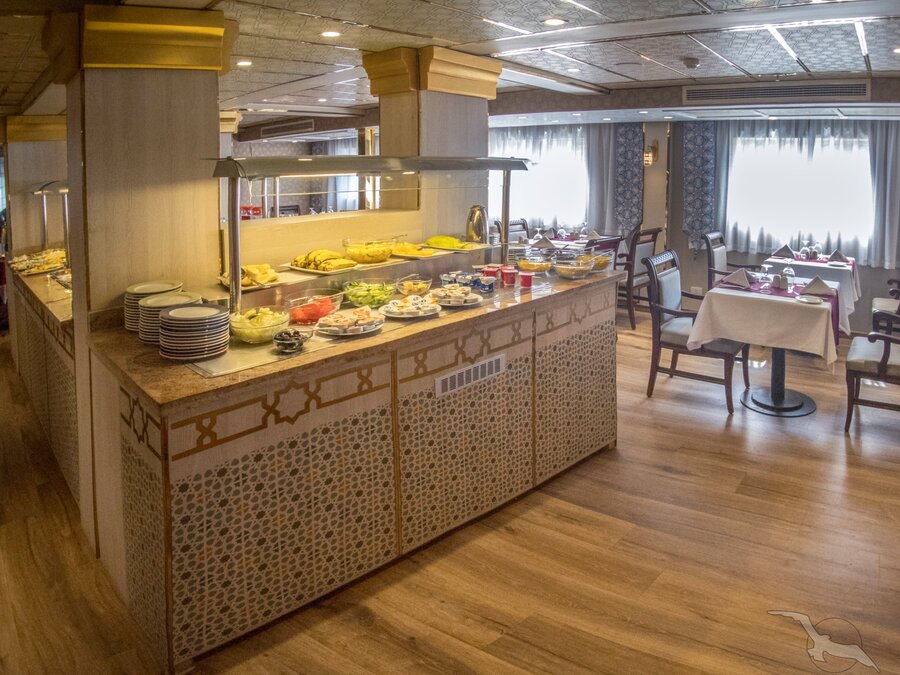 Unsere Nilschiffe verfügen über komfortable und geschmackvoll eingerichtete Restaurants. Ein aufmerksames Restaurant- und Küchenteam kümmert sich mit internationalen und einheimischen Gerichten, die liebevoll in Buffetform serviert werden, um Ihr kulinarisches Wohlergehen. Die zu Beginn der Reise gewählten Sitzplätze werden in der Regel beibehalten.