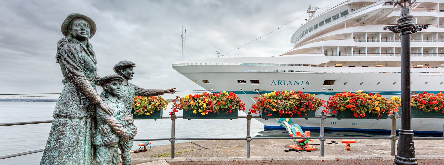 Cobh bezaubert mit seinen bunten Häuserreihen direkt am Naturhafen Cork durch eine beschauliche Schönheit. Die kleine Stadt mit knapp 13.000 Einwohnern schaut auf eine bewegte Geschichte zurück: Während der großen Hungersnot 1845-51 stiegen tausende Menschen in Cobh auf ein Schiff und fuhren in eine ungewisse Zukunft, sie wanderten aus. Das Annie Moore Monument in Cobh, das Sie während Ihrer Großbritannien Kreuzfahrt entdecken können, erinnert an diese Zeit. Die zweite Statue von Annie Moore steht übrigens im Ellis Island Immigration Museum in New York, wohin die junge Frau, wie viele andere Iren auch, damals auswanderten.