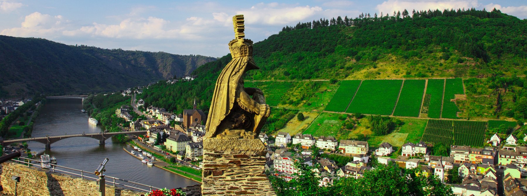 Das Städtchen Cochem liegt beiderseits der Mosel und gilt mit seinen 5000 Einwohnern als zweitkleinste Kreisstadt Deutschlands. Während eines geführten Rundgangs lernen Sie die malerische Altstadt näher kennen. Die schöne Lage, Reste der Stadtmauern, erhaltene Stadttore, der Marktplatz mit dem schmucken Rathaus, kleine Gassen und schiefergedeckte Häuser verleihen der Stadt ihr einzigartiges Flair. Erfahren Sie viel Wissenswertes über Cochem und dessen Geschichte. Anschließend Rückkehr zum Schiff.