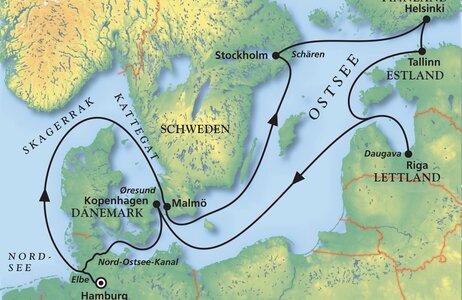 Hamburg - Malmö - Stockholm - Helsinki - Tallinn - Riga - Kopenhagen - Hamburg