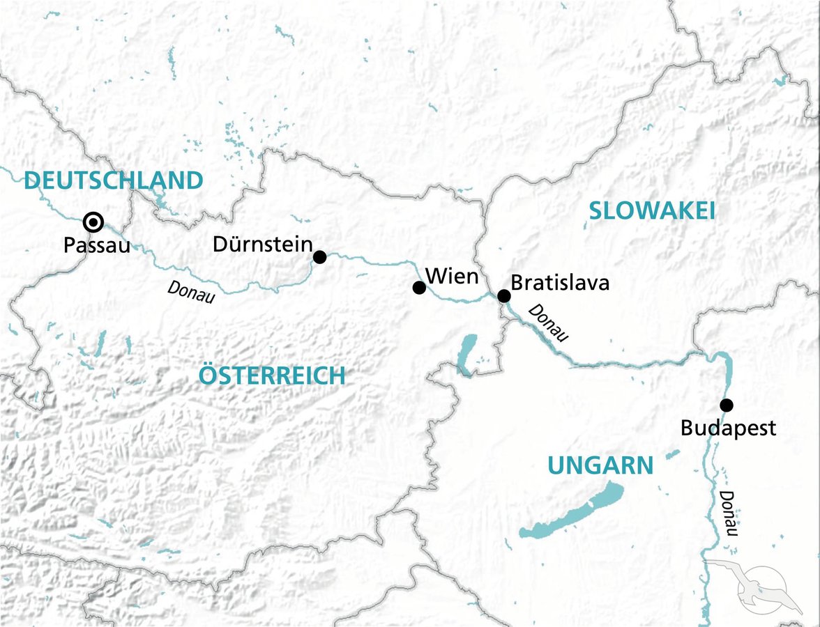 Diese Kreuzfahrt eignet sich besonders für den Urlaub zwischendurch oder um einfach mal eine Flussreise auszuprobieren. Ihre Reise beginnt in der Drei-Flüsse-Stadt Passau, wo Donau, Inn und Ilz zusammenfließen. Nach einer Übernachtung an Bord erreichen Sie Österreichs Hauptstadt, das charmante Wien. Auf einer Stadtrundfahrt besichtigen Sie die Hauptsehenswürdigkeiten Wiens. Am darauffolgenden Tag legen Sie in Budapest an. Auf Stadtrundfahrt und Abendausflug zeigen wir Ihnen viele Sehenswürdigkeiten. Am vierten Tag genießen Sie an Bord die Donaulandschaft, bevor Ihr Schiff nachmittags Bratislava, Hauptstadt der Slowakei, erreicht. Dürnstein, das am Donauufer gelegene hübsche Barockstädtchen, können Sie zu Fuß besichtigen oder Sie lernen auf unserem Ausflug die Schönheiten der Wachau kennen.