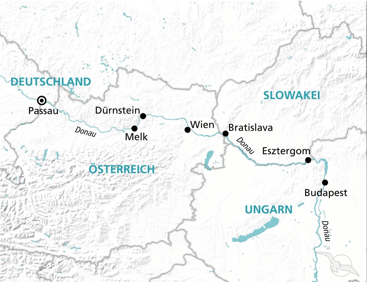 Auf dieser Kreuzfahrt reisen Sie von einer Donauschönheit zur nächsten. Ein Besuch in der lieblichen Wachau zeigt Ihnen die Schönheit dieser niederösterreichischen Region auf. Wien – Stadt der Fiaker, des Stephansdoms und der Sachertorte, um nur einige Attribute zu nennen, begeistert immer wieder aufs Neue und besticht durch einzigartigen Charme. Beim Ausflug Donauknie besuchen Sie die alte Bischofsstadt Esztergom. Und auch die zweite Donau-Hauptstadt Budapest fasziniert mit einzigartigem Panorama. Erkunden Sie die Stadt ausführlich während Ihres Aufenthaltes. Von Budapest bringt Ihr Schiff Sie nach Bratislava, die dritte Hauptstadt Ihrer Kreuzfahrt. Im österreichischen Melk gibt es das weithin bekannte Benediktinerklosterstift Melk zu sehen. Ihre Flusskreuzfahrt geht in Passau zu Ende.