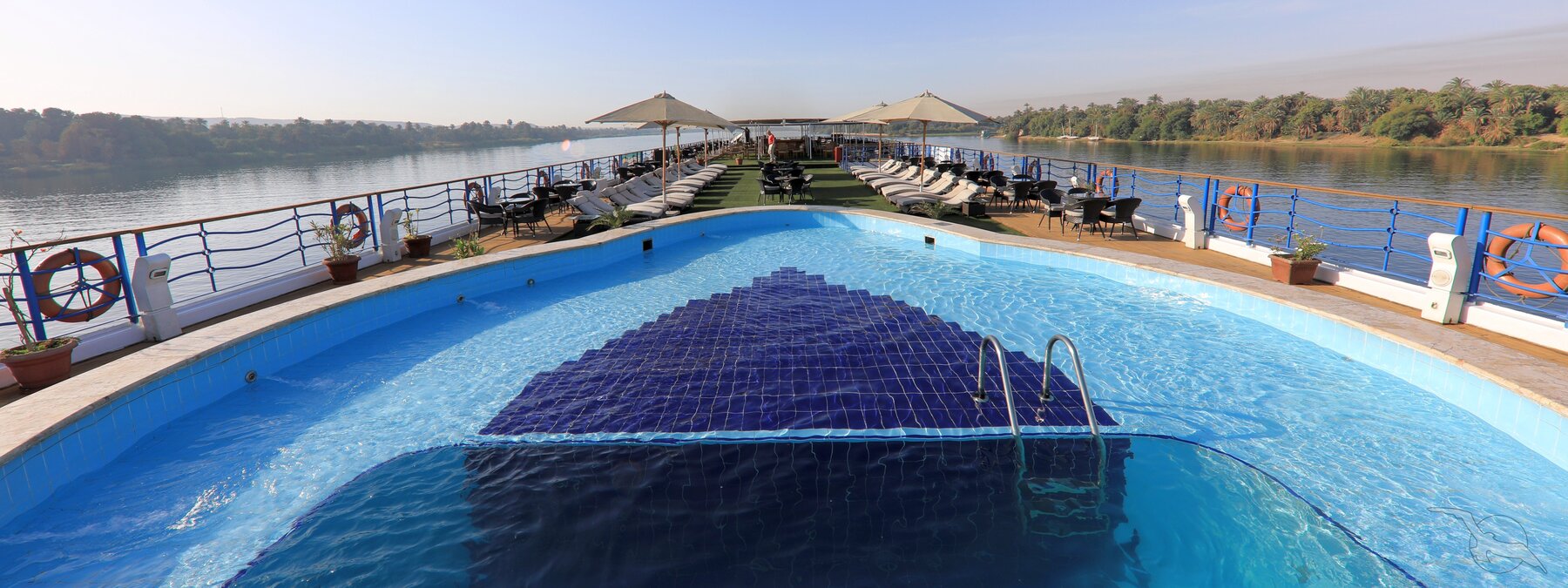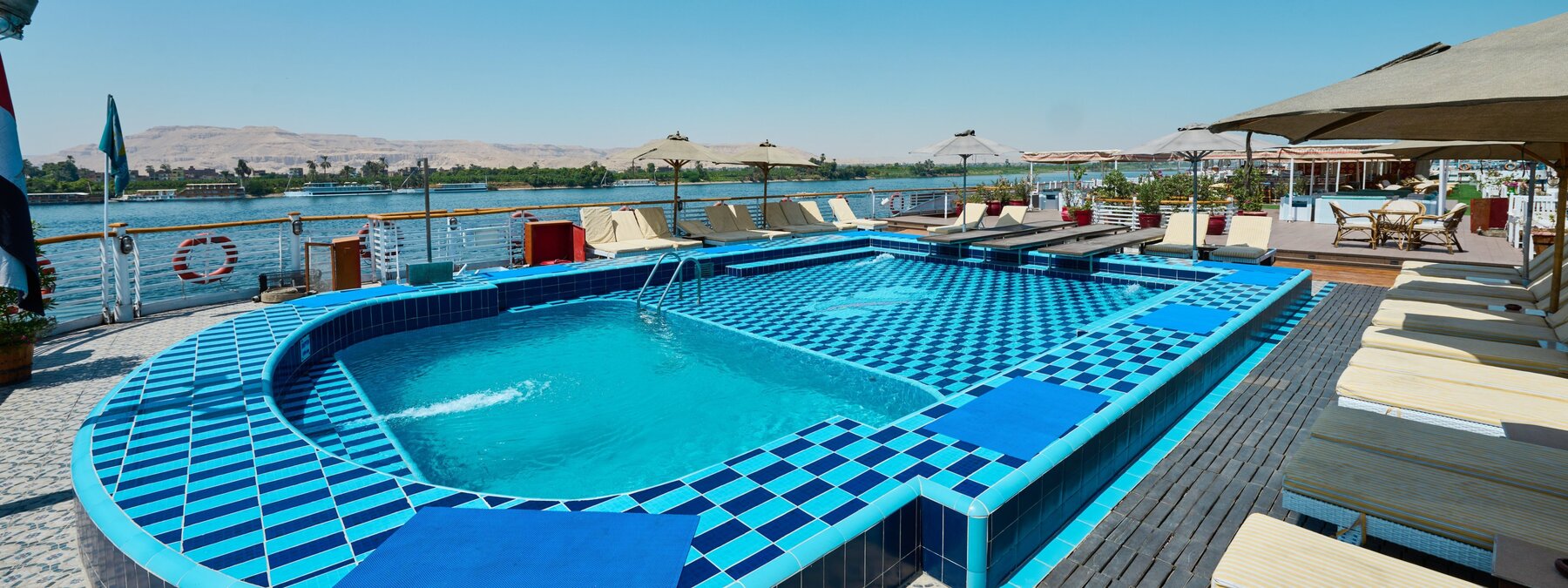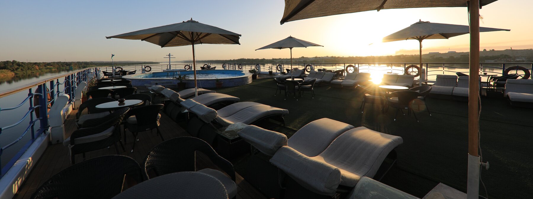 Die Nilkreuzfahrtschiffe ähneln sich in Konzeption und Bauweise, unterscheiden sich aber in Größe, Anzahl und Ausstattung der Kabinen. Phoenix Reisen greift bei der Auswahl seiner Nilflotte auf unterschiedliche Partner/Reedereien zurück, die durch eine langjährige Zusammenarbeit bestens auf die Ansprüche unserer Gäste einzugehen wissen und über eine große Erfahrung zu den Abläufen unserer Programme verfügen. Unsere Mitarbeiter vor Ort legen gemeinsam mit unserer ägyptischen Agentur großen Wert auf den Zustand der eingesetzten Schiffe, die durch regelmäßige Kontrollen und Abnahmen den Anforderungen innerhalb der von uns beschriebenen Kategorien entsprechen müssen. Dafür sind Renovierungs- und Instandhaltungsmaßnahmen seitens unserer Partnerredeereien notwendig, die in gewissen Abständen für die unterschiedlichen Teilbereiche eines Schiffes durchgeführt werden. Die Schiffe werden dadurch regelmäßig den aktuellen Standards angepasst. Bei einer gängigen Bauweise von 4-5 Passagierdecks ist i.d.R. je nach Schiff nur die Anordnung der öffentlichen Bereiche von Restaurant und Salon mit Lounge/Bar auf verschiedenen Decks unterschiedlich. Das während einer Nilkreuzfahrt im Mittelpunkt stehende Sonnendeck des Schiffes verfügt über eine Außenbar, einen kleinen Swimmingpool und ausreichend Liege- und Sitzplätze zum Sonnenbaden oder als Schattenplatz. Welches Schiff an welchen Wochentagen zum Einsatz kommt, hängt jeweils vom Buchungsaufkommen ab und wird von unserer örtlichen Agentur eingeteilt.