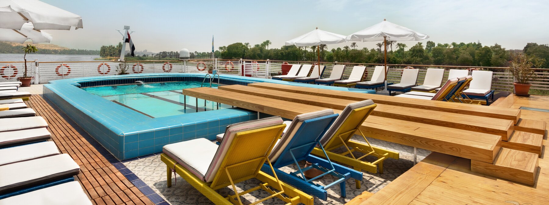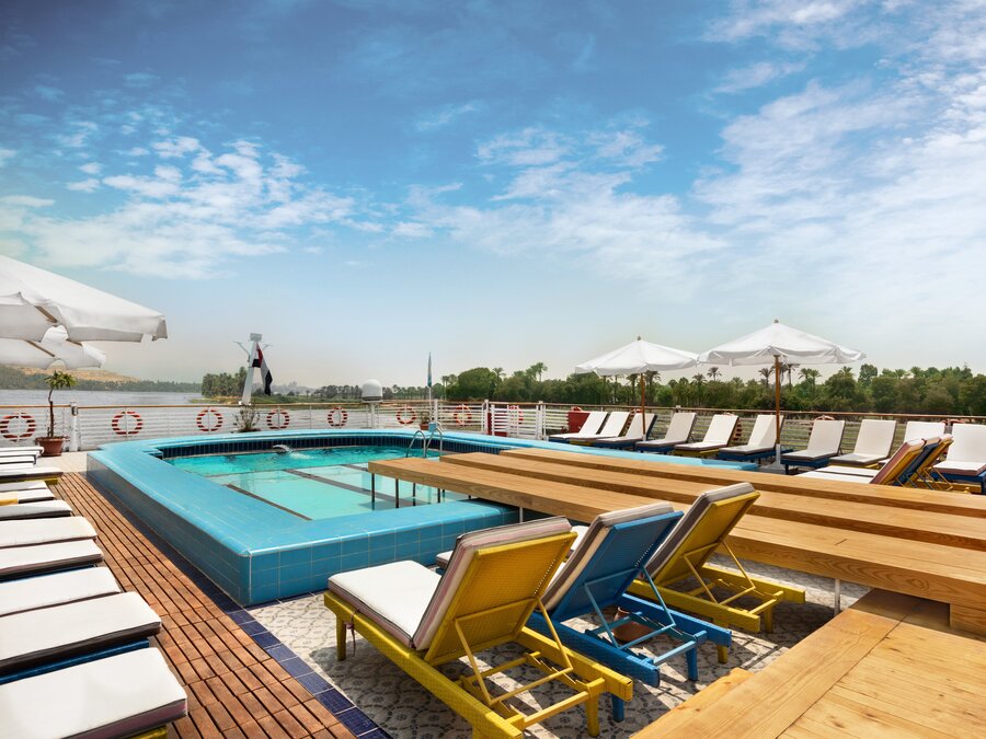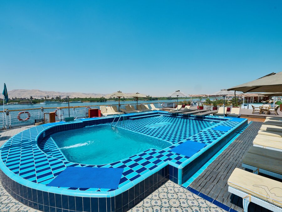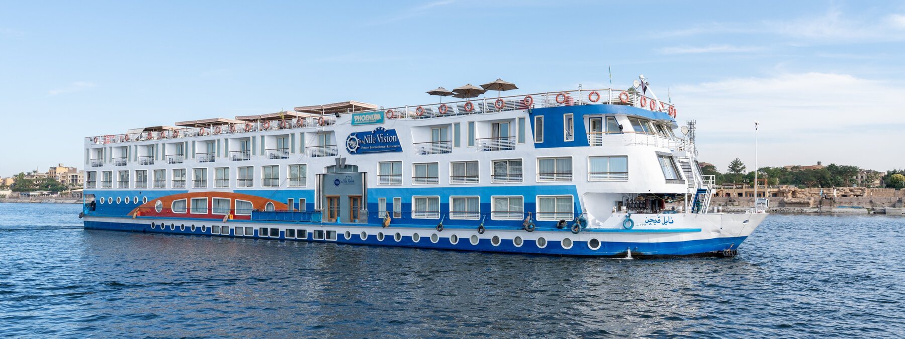 Die Nilkreuzfahrtschiffe ähneln sich in Konzeption und Bauweise, unterscheiden sich aber in Größe, Anzahl und Ausstattung der Kabinen. Phoenix Reisen greift bei der Auswahl seiner Nilflotte auf unterschiedliche Partner/Reedereien zurück, die durch eine langjährige Zusammenarbeit bestens auf die Ansprüche unserer Gäste einzugehen wissen und über eine große Erfahrung zu den Abläufen unserer Programme verfügen. Unsere Mitarbeiter vor Ort legen gemeinsam mit unserer ägyptischen Agentur großen Wert auf den Zustand der eingesetzten Schiffe, die durch regelmäßige Kontrollen und Abnahmen den Anforderungen innerhalb der von uns beschriebenen Kategorien entsprechen müssen. Dafür sind Renovierungs- und Instandhaltungsmaßnahmen seitens unserer Partnerredeereien notwendig, die in gewissen Abständen für die unterschiedlichen Teilbereiche eines Schiffes durchgeführt werden. Die Schiffe werden dadurch regelmäßig den aktuellen Standards angepasst. Bei einer gängigen Bauweise von 4-5 Passagierdecks ist i.d.R. je nach Schiff nur die Anordnung der öffentlichen Bereiche von Restaurant und Salon mit Lounge/Bar auf verschiedenen Decks unterschiedlich. Das während einer Nilkreuzfahrt im Mittelpunkt stehende Sonnendeck des Schiffes verfügt über eine Außenbar, einen kleinen Swimmingpool und ausreichend Liege- und Sitzplätze zum Sonnenbaden oder als Schattenplatz. Welches Schiff an welchen Wochentagen zum Einsatz kommt, hängt jeweils vom Buchungsaufkommen ab und wird von unserer örtlichen Agentur eingeteilt.