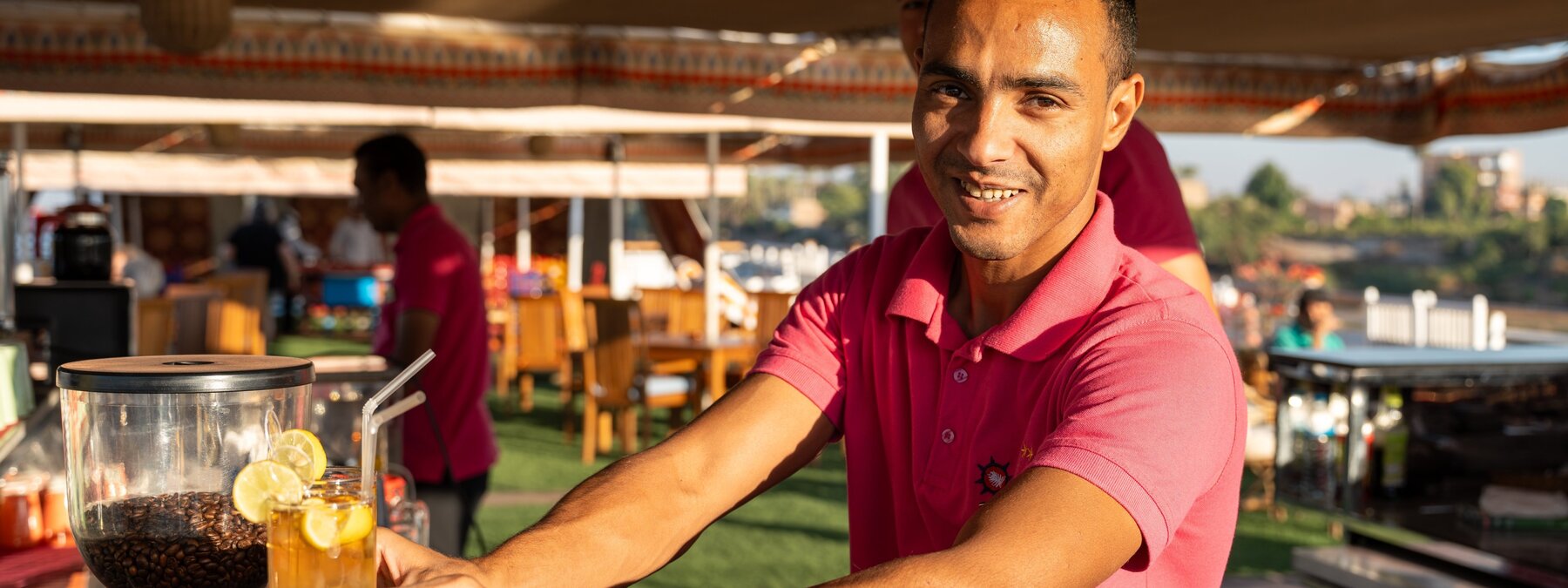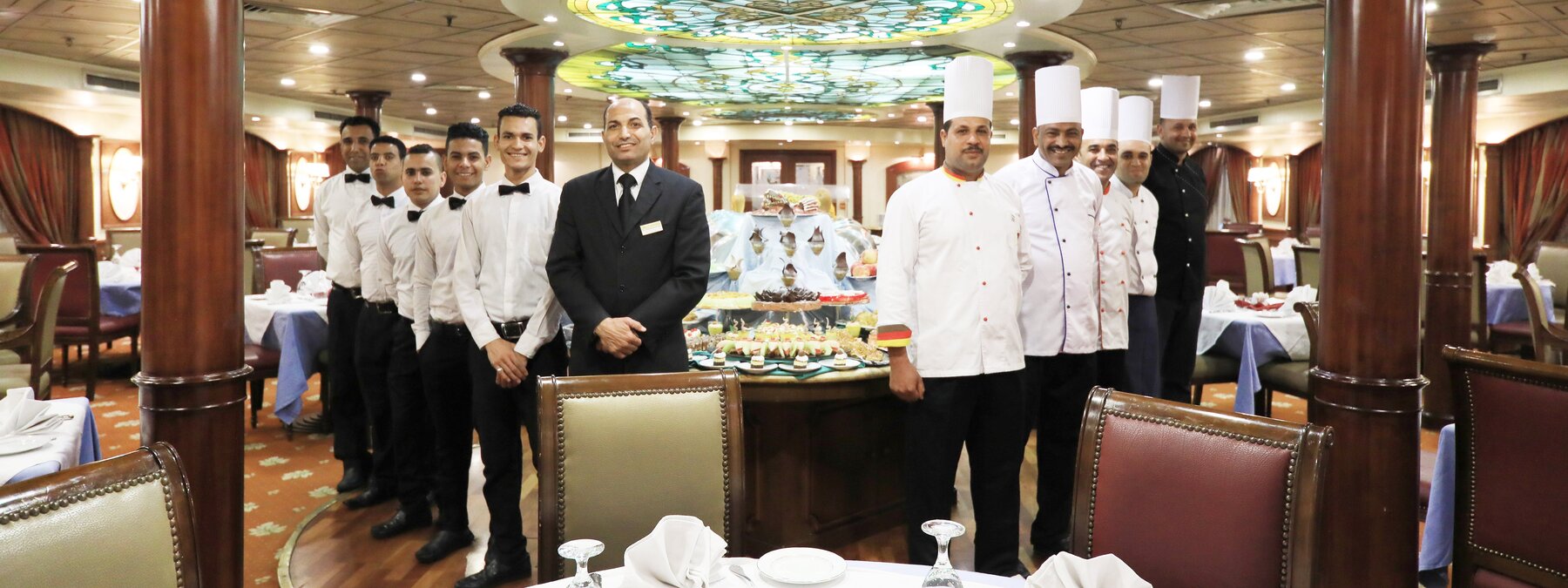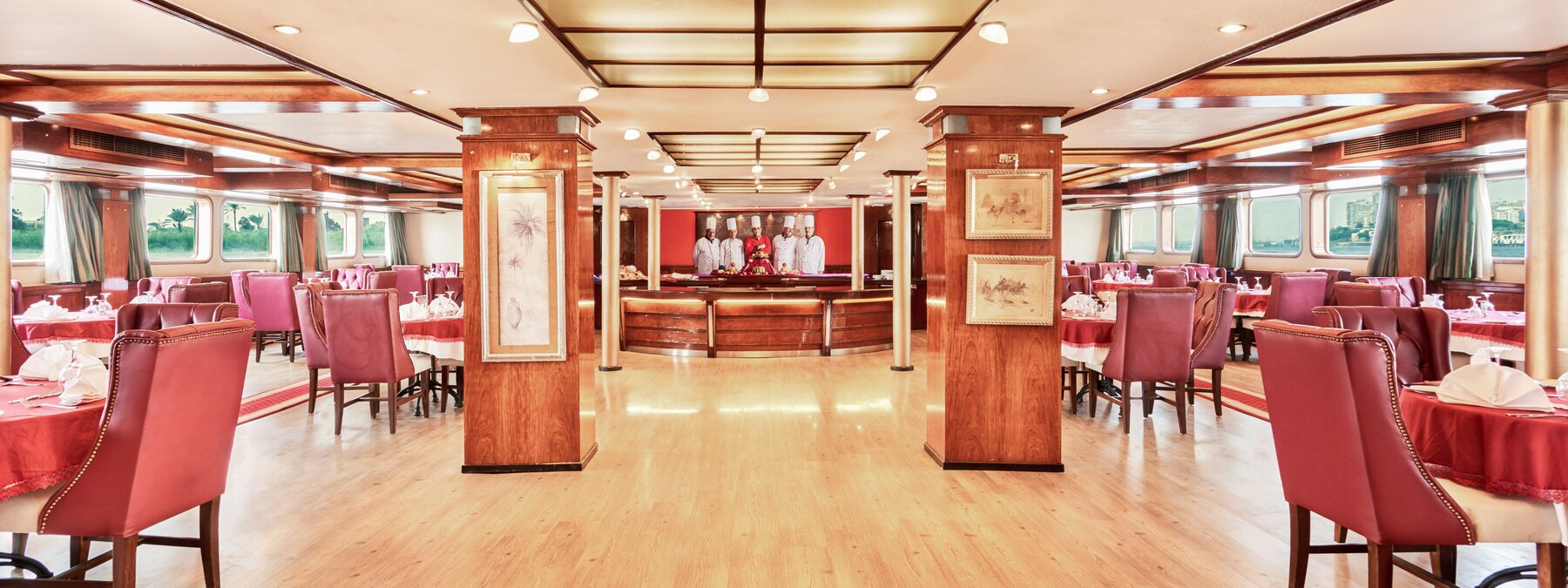Unsere Nilschiffe verfügen über komfortable und geschmackvoll eingerichtete Restaurants. Ein aufmerksames Restaurant- und Küchenteam kümmert sich mit internationalen und einheimischen Gerichten, die liebevoll in Buffetform serviert werden, um Ihr kulinarisches Wohlergehen. Die zu Beginn der Reise gewählten Sitzplätze werden in der Regel beibehalten.