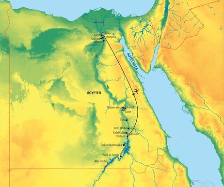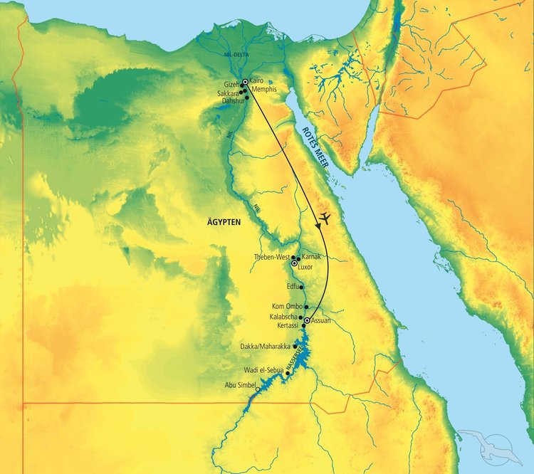Sie reisen von den Königsgräbern des Alten Reiches in Unterägypten bis zu den monumentalen Tempelanlagen des Neuen Reiches ins ferne Nubien. Die großartigen Baudenkmäler des Cheops und Ramses symbolisieren mit den Pyramiden in Kairo und den Tempeln von Abu Simbel eindrucksvoll das antike Reich jahrtausendealter pharaonischer Dynastien. Nach einem Inlandsflug reisen Sie bequem mit den beiden erstklassig ausgestatteten Schiffen MS Legacy und MS Omar el-Khayam der Steigenberger-Hotelkette auf Nil und Nassersee. Besonders empfehlenswert ist eine Hotelverlängerung, wahlweise um das besonders gute Klima Assuans zu genießen oder um anschließend an den Stränden des Roten Meeres zu baden.