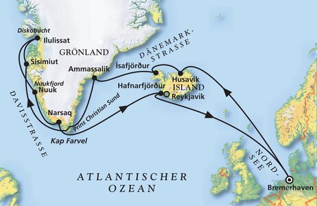 Bremerhaven - Husavik - Isafjördur - Ammassalik - Sisimiut - Ilulissat - Nuuk - Narsaq - Bremerhaven