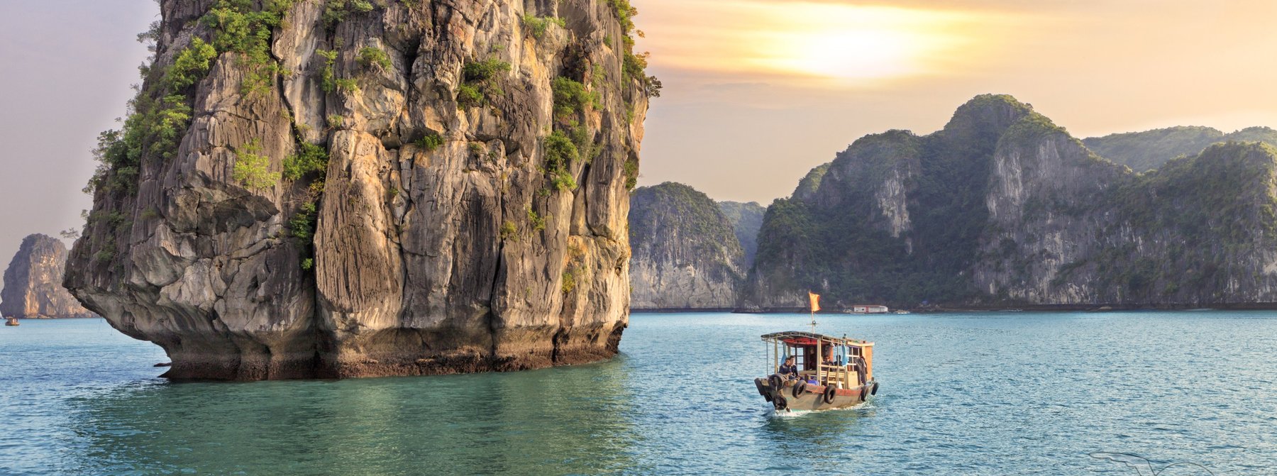 Für die Vietnamesen stellt die Halong Bucht das 8. Weltwunder dar – und zweifelsohne ist sie eines der schönsten Naturschauspiele mit ihren geschätzten 2000 Kalksteinfelsen, die sich teilweise majestätisch und mit dichtem Dschungel bewachsen mehrere hundert Meter hoch aus dem smaragdgrünen Wasser erheben. Der Untergrund manchen Felsens ist über die Jahrhunderte hinweg so stark korrodiert, dass sich der Stein nur noch als Torbogen erhebt. Viele eigenartige Formationen stellen sich als "Steinhund", "Himmelstor" oder "Kämpfende Hähne" dar. Ein Teil der Bucht wurde von der UNESCO zum Weltnaturerbe erklärt. Sie werden mit lokalen Booten von Ihrem Schiff abgeholt und besteigen in Bai Chay das Ausflugsboot, mit dem Sie "hautnah" das teils bizarre und auch ein wenig ehrfurchtgebietende Naturwunder bestaunen können. Sie gewinnen während Ihrer Rundfahrt auch einen Eindruck vom Leben der Einwohner in ihren Schwimmenden Dörfern.