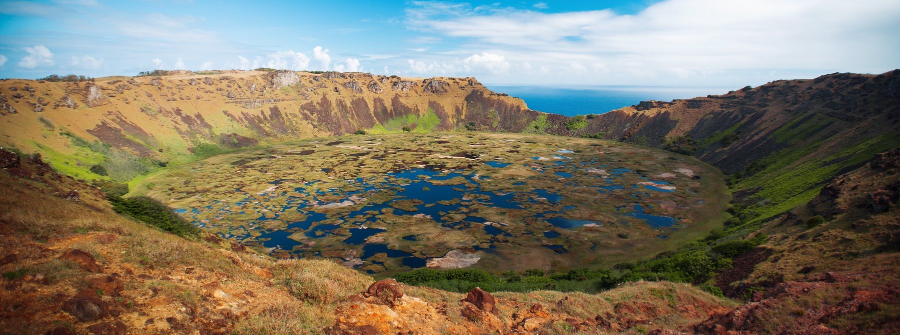 Krater des Rano Kau Vulkans auf der Osterinsel, Chile
