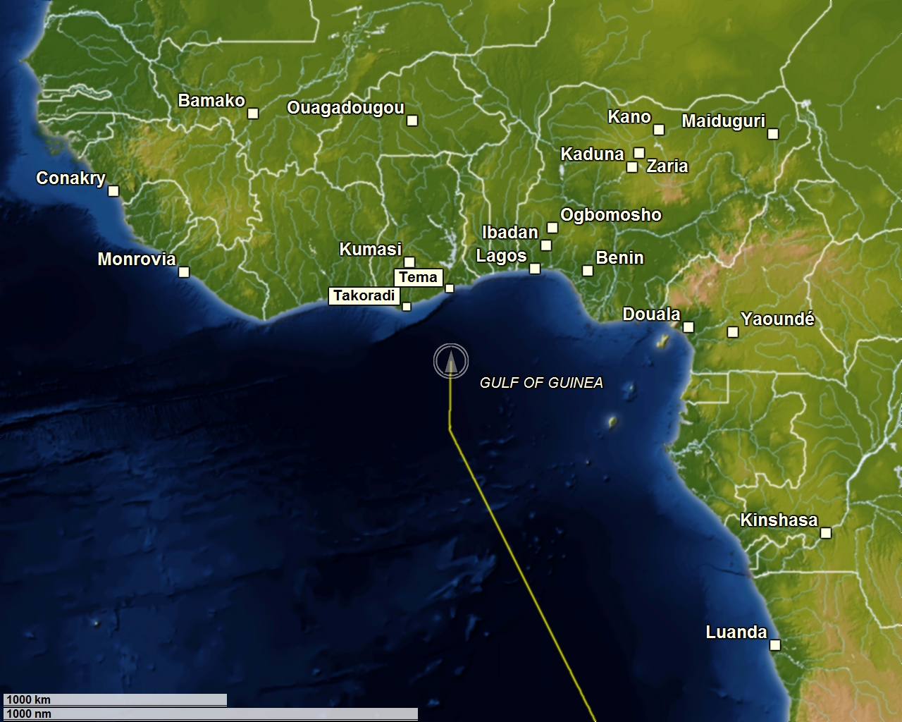 02°13.17´ N 000°02.58´ E