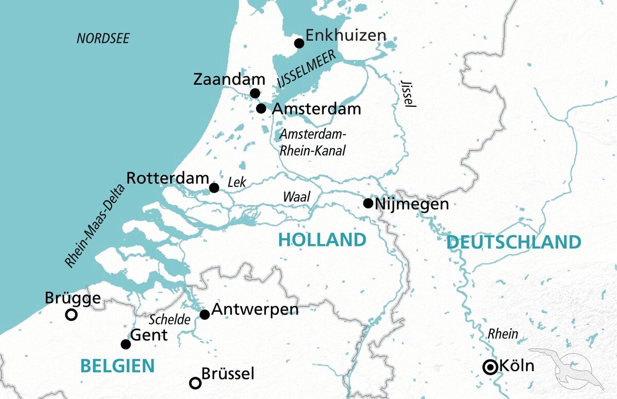 Köln – Amsterdam – Ijsselmeer – Enkhuizen - Rotterdam – Gent - Antwerpen – Nijmegen – Köln