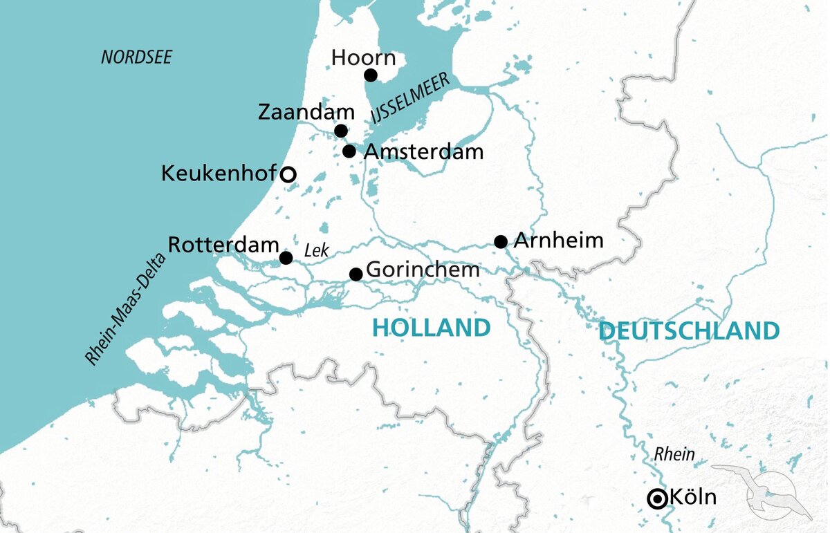 Genießen Sie unser Nachbarland Niederlande mit unserem First-Class-Neubau MS Aurelia. Kommen Sie an Bord zu einer wohlumsorgten Reise mit all inclusive-Verpflegung und erleben Sie die Vielfalt Hollands. Die Amstelmetropole Amsterdam sowie die Hafenstadt Rotterdam laden Sie zu verschiedenen geführten Ausflügen ein. In Amsterdam bleibt auch noch Zeit für ausgiebiges Shopping. Die hübschen Städtchen Hoorn, Gorinchem und Arnheim können auf einem Stadtrundgang erkundet werden, aber auch gut auf eigende Faust. Lassen Sie sich überraschen, was eine Flussreise so alles zu bieten hat. Willkommen an Bord!
