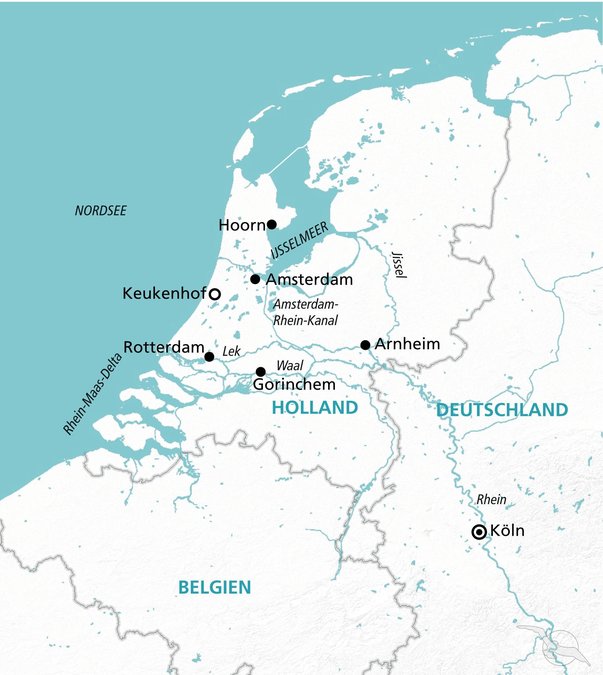 Genießen Sie unser Nachbarland Holland mit unserem First-Class-Neubau MS Amina. Kommen Sie an Bord zu einer wohlumsorgten Reise mit all inclusive-Verpflegung und erleben Sie die Vielfalt Hollands. Die Amstelmetropole Amsterdam sowie die Hafenstadt Rotterdam laden Sie zu verschiedenen geführten Ausflügen ein. In Amsterdam bleibt auch noch Zeit für ausgiebiges Shopping. Die hübschen Städtchen Hoorn, Gorinchem und Arnheim können auf einem Stadtrundgang erkundet werden, aber auch gut auf eigende Faust. Lassen Sie sich überraschen, was eine Flussreise so alles zu bieten hat. Willkommen an Bord!