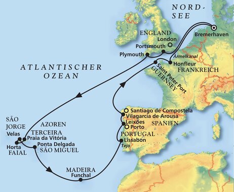 Herbstimpressionen und sonnenverwöhnte Momente erleben Sie während dieser Kreuzfahrt mit Ihrer MS Amadea auf dem Seeweg zu den wunderschönen portugiesischen Inseln der Azoren und der Blumeninsel Madeira. Umkränzt von Aufenthalten im lieblichen Süden Englands, auf den französisch inspirierten Kanalinseln sowie in Spanien ist diese 22-tägige Amadea Kreuzfahrt ein unvergesslich schönes Kreuzfahrterlebnis.
