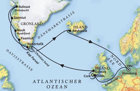 Grönland ist und bleibt ein Traumziel für Kreuzfahrer. Erfüllen Sie sich Ihren Traum und reisen Sie mit Ihrem Lieblingsschiff Artania gen Norden mit Abstechern in Irland und Island zum "Grünen Land", das auch im Sommer mit Eis- und Gletscherpanoramen verzaubert. Ihr Kapitän sorgt dafür, dass Sie die schönsten Seiten Grönlands genießen können, während die Schiffscrew Sie mit kulinarischen Leckerbissen und hervorragendem Service verwöhnt.