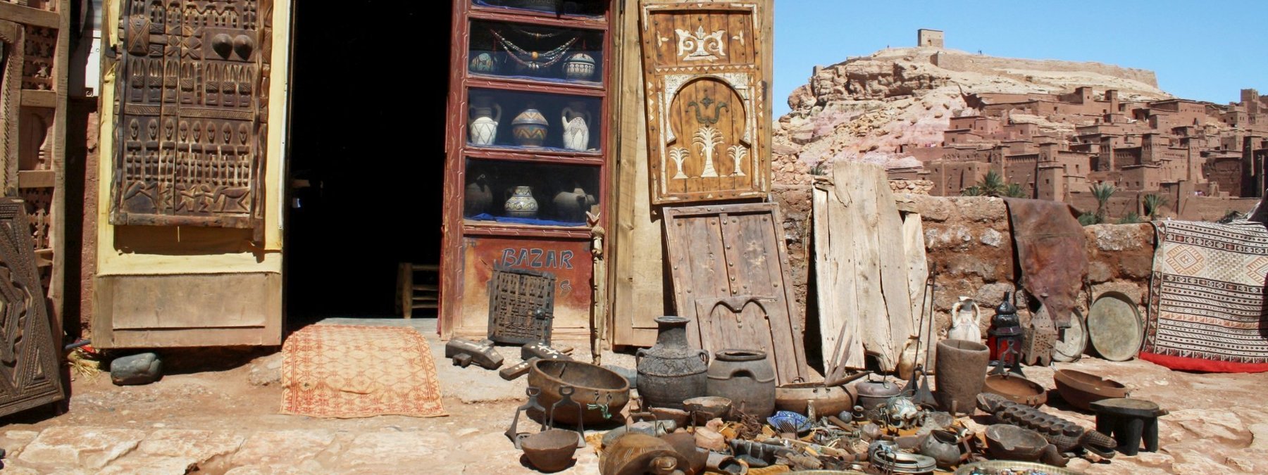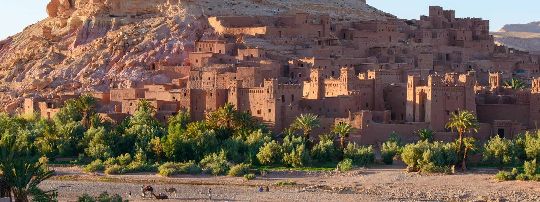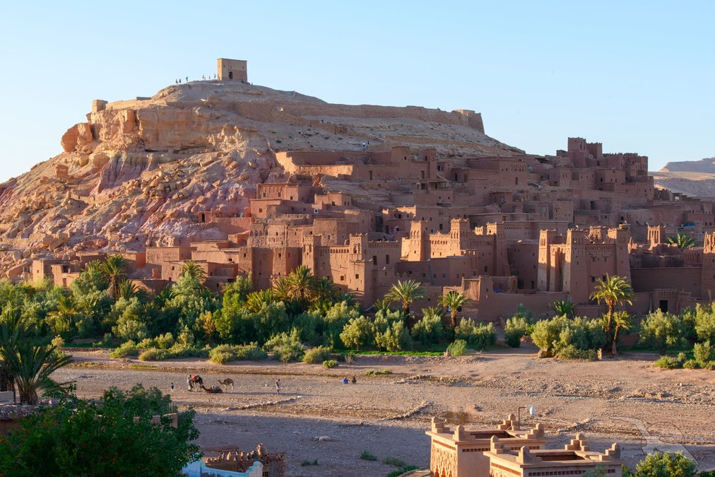 Am Vormittag gelangen Sie über die faszinierende Bergwelt des Hohen Atlas (Tizi n‘ Tichka Pass, 2260 Meter) in den Süden Marokkos. Zunächst besuchen Sie das als Weltkulturerbe geschützte Lehmdorf Ait Benhaddou mit der charakteristischen Berberarchitektur, das häufig als Filmkulisse diente. Danach fahren Sie durch das palmengesäumte Draa-Tal, entlang des gleichnamigen Flusses zum Oasenort Zagora.