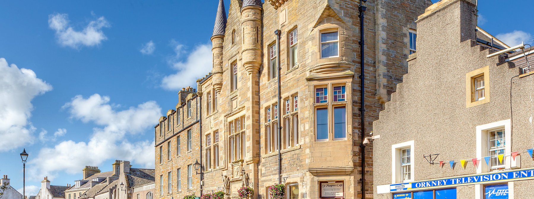 Kurzer Bustransfer nach Kirkwall. Ihr Rundgang führt Sie durch die historische Altstadt mit ihren schmalen, gewundenen Gassen, die sich über all die Jahrhunderte kaum verändert haben. Sie sehen die beeindruckende St. Magnus-Kathedrale aus dem 12.Jh., auch als das "Licht des Nordens" bekannt. Sie gilt als das schönste mittelalterliche Gebäude in Nord-Schottland. Sie nehmen an einer etwa 45-minütigen geführten Besichtigung teil. Anschließend geht es zur gegenüberliegenden Burgruine Bishop's Palace. Vom "Moosie Toor" (einem runden Turm) bietet sich Ihnen ein guter Blick über die Stadt. Der Rundgang führt Sie dann zum nahe gelegenen Earl's Palace, einem der bedeutendsten Rensaissancebauwerke in Schottland. Beide Burgruinen liegen im Herzen der modernen Stadt, und während des Rundgangs erfahren Sie mehr über ihre Geschichte, die eng mit der Herrschaft des tyrannischen und wenig beliebten 2. Earl of Orkney, Patrick Stewart, verbunden ist. Zum Abschluss machen Sie noch einen Fotostopp an den Tankerness House Gardens, bevor es zurück zum Schiff geht.