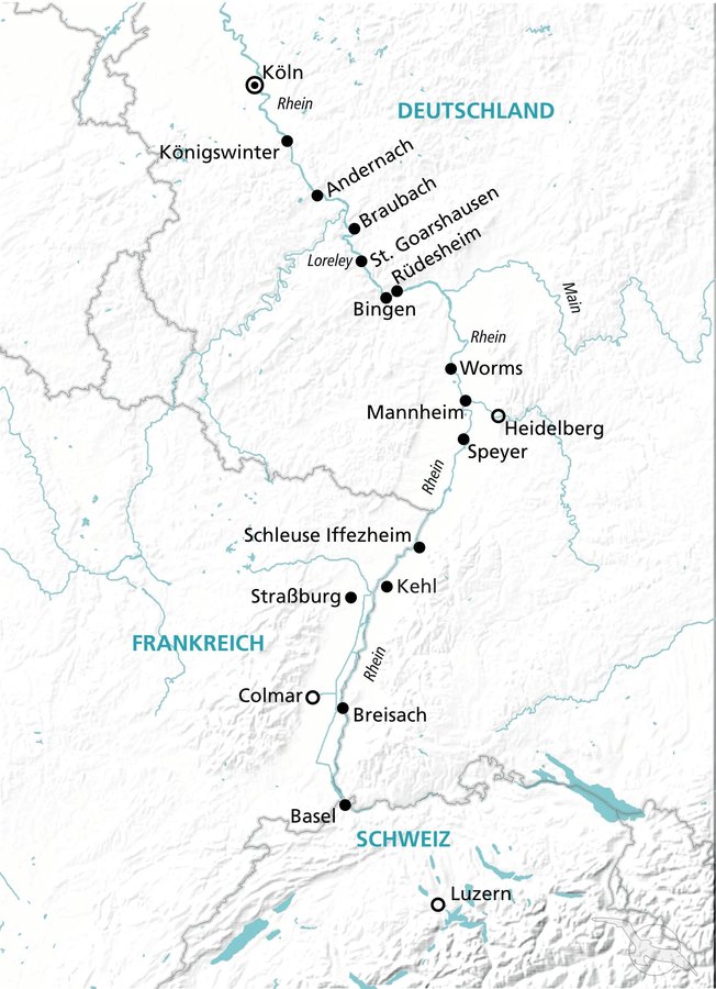 Frankfurt - Mannheim - Speyer - Breisach - Basel - Straßburg - Worms - Rüdesheim - Braubach - Mainz - Frankfurt