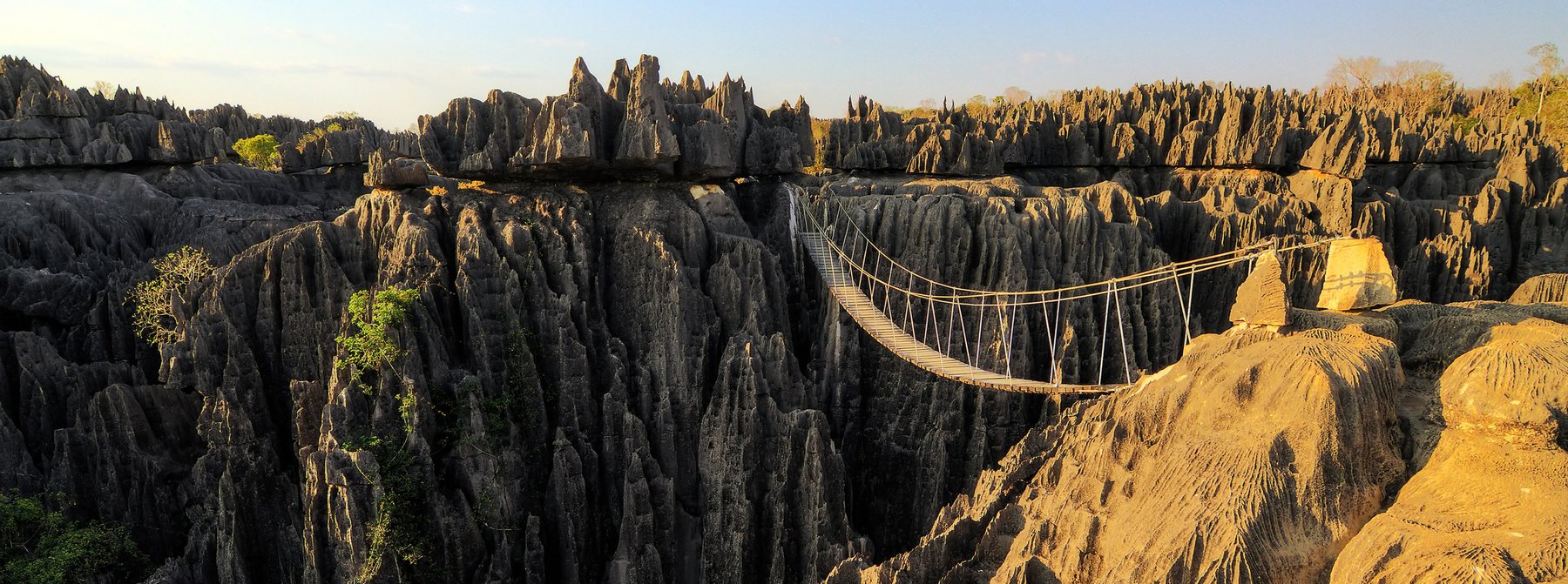 Es ist eine wundersame und ganz eigene Welt, die sich während einer Madagaskar Kreuzfahrt im Naturschutzgebiet Tsingy de Bamaraha vor Besuchern auftürmt. Kalkhaltiges Gestein hat sich dort in messerscharfe Felsformationen verwandelt, und ehemalige Korallenriffe wurden zu 40 Meter hohen rasierklingenähnlichen Gesteinsnadeln, die von engen Felsspalten, geheimnisvollen Grotten, dramatischen Canyons und Seen mit Mangroven umgeben sind. Wo sich menschliche Besucher nur über Hängebrücken in teilweise schwindelerregender Höhe einen sicheren Weg durch das scharfe Steinlabyrinth bahnen, turnen einige der seltensten Tierarten – darunter Raubtiere wie der Ringelschwanzmungo, 13 unterschiedliche Lemurenarten wie die Roten Makis oder der Kopaka, ein seltener Nachtvogel – zwischen der ungastlich kargen Steinlandschaft munter umher. Im Nationalpark, der seit 1990 zum UNESCO-Weltnaturerbe gehört und der ausschließlich mit einem parkeigenen Führer besucht werden sollte, stoßen Wissenschaftler und Forscher auch heutzutage immer noch auf bisher unbekannte Tier- und Pflanzenarten.