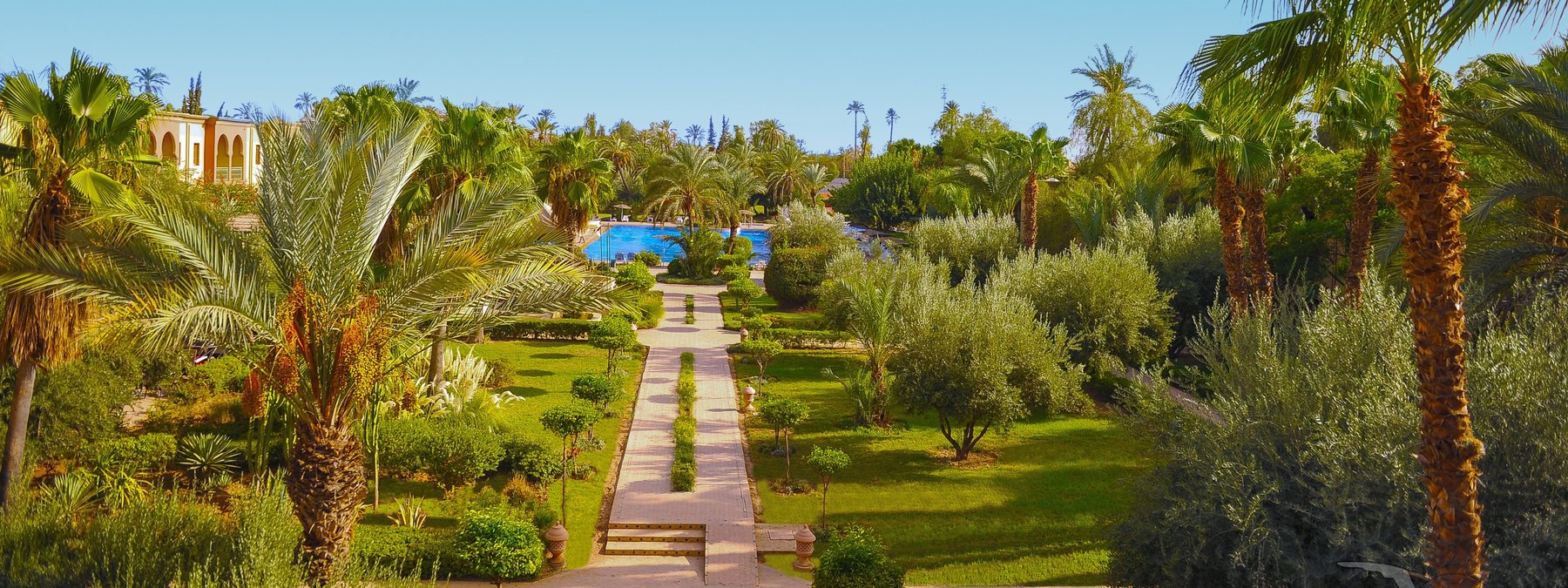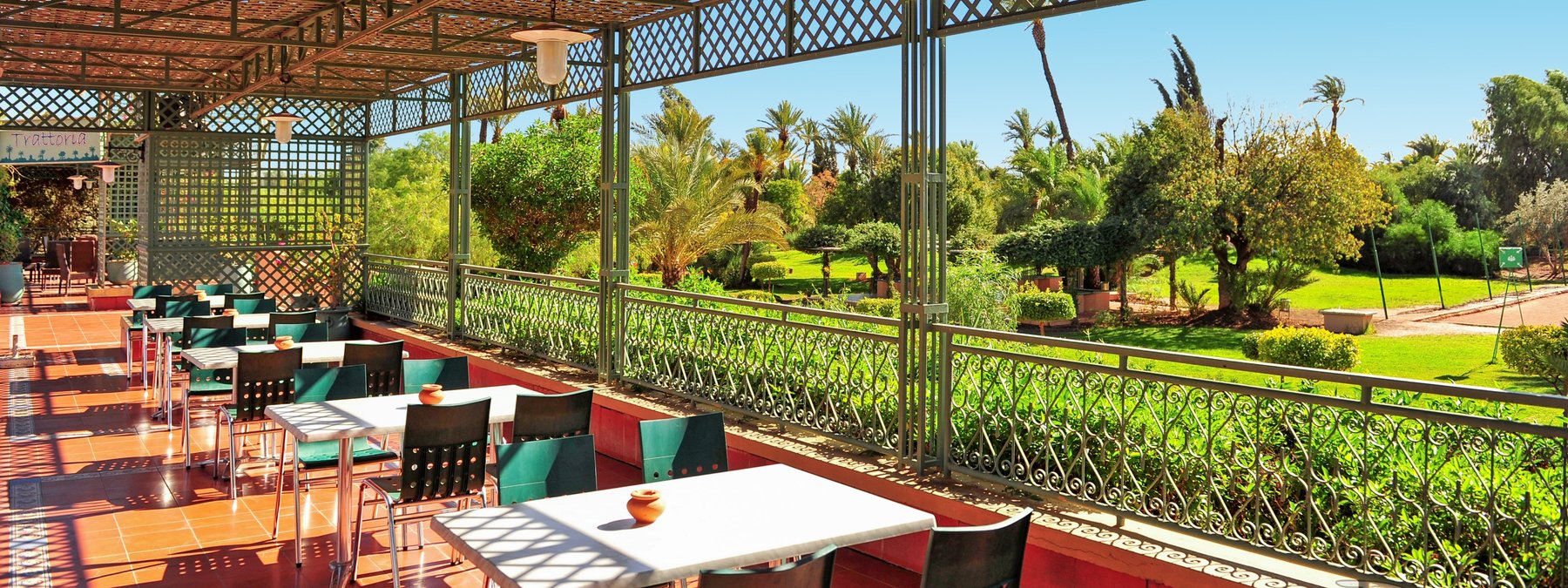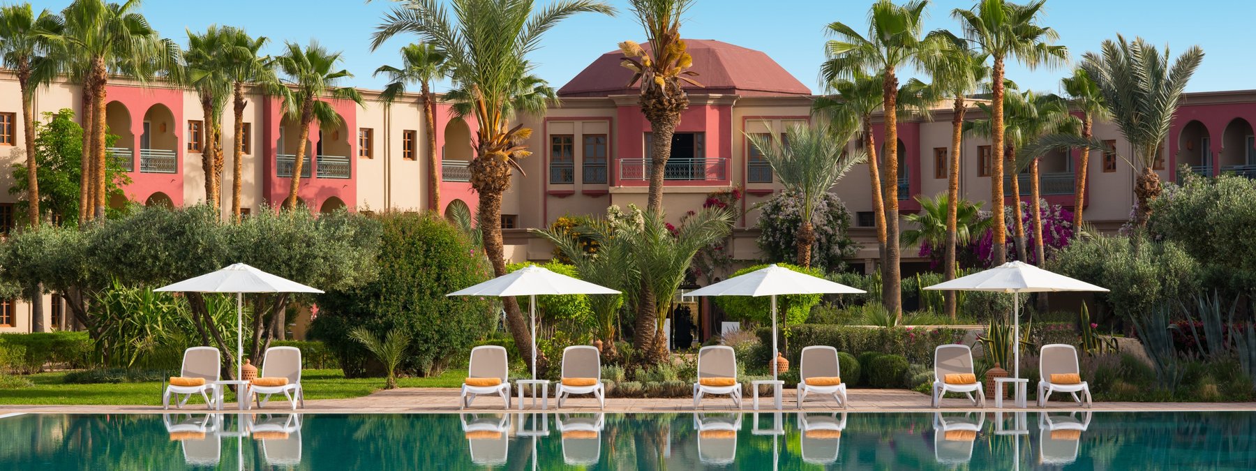 Inmitten einer riesigen Palmenoase im Stadtteil Palmeraie am Rande der Stadt gelegen. Zum Stadtzentrum und der Altstadt sind es ca. 10 km (Shuttle inklusive, Reservierung erforderlich).