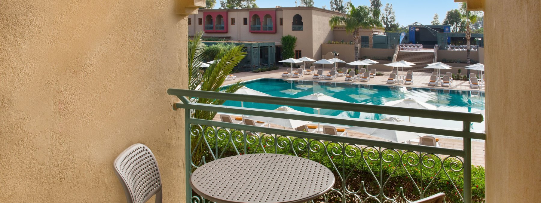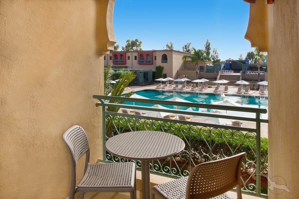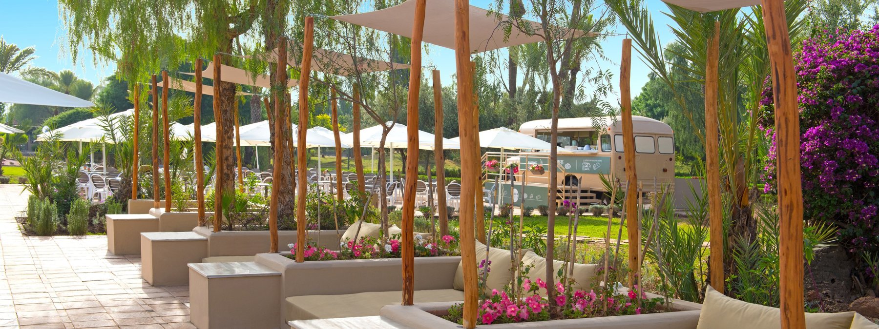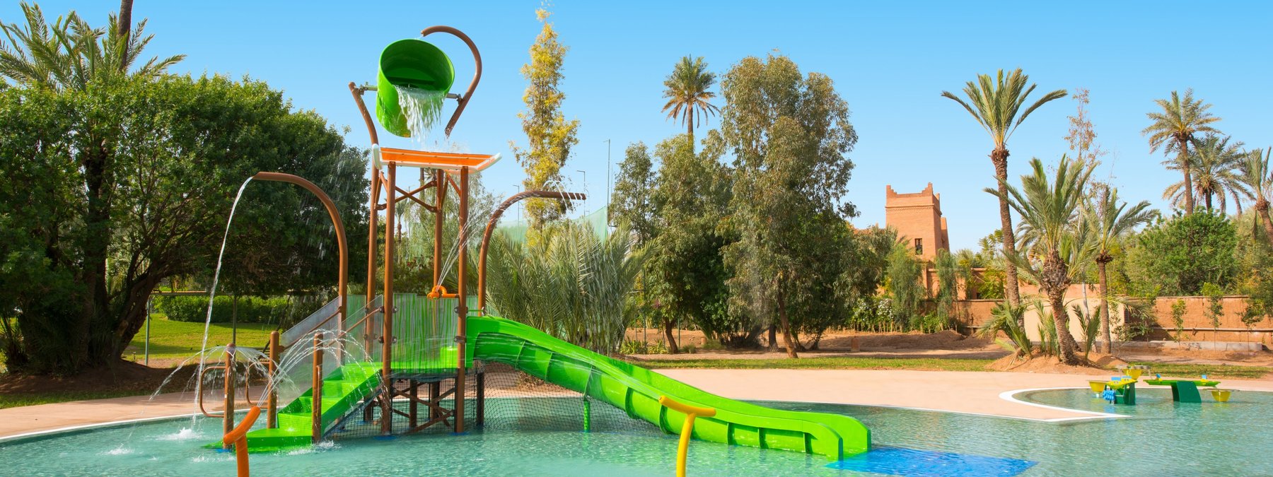 Inmitten einer riesigen Palmenoase im Stadtteil Palmeraie am Rande der Stadt gelegen. Zum Stadtzentrum und der Altstadt sind es ca. 10 km (Shuttle inklusive, Reservierung erforderlich).