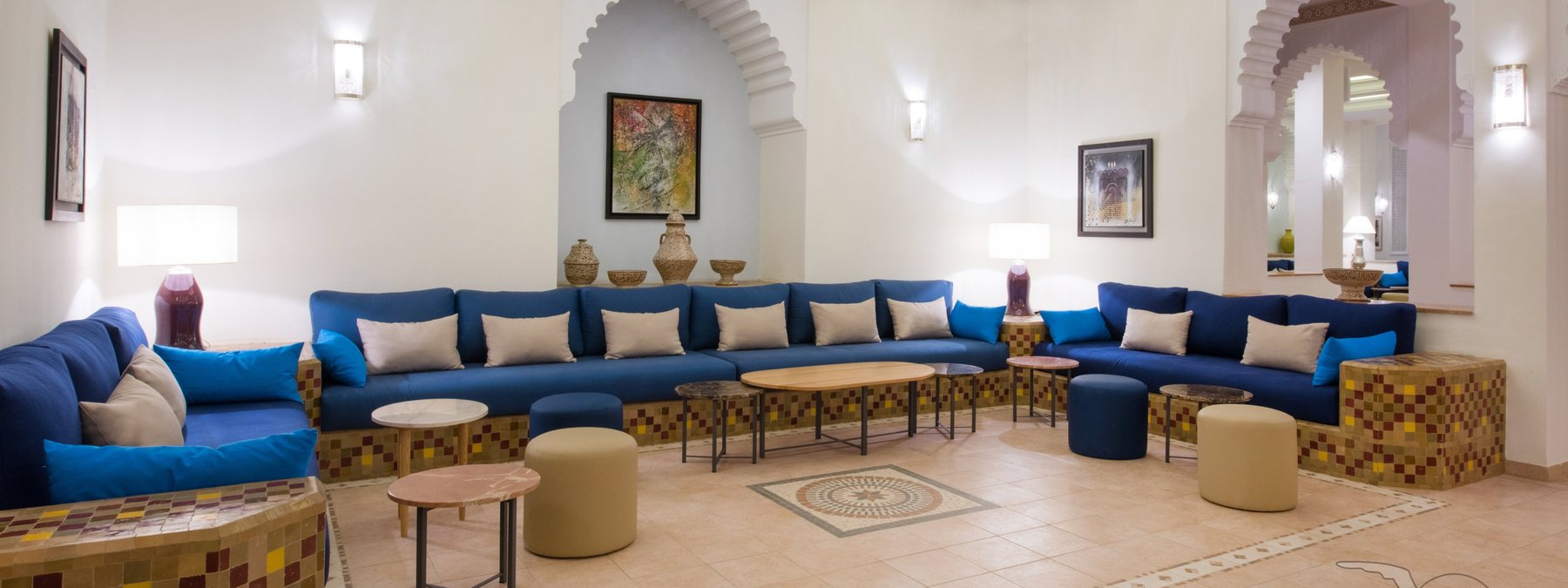 Das moderne im marokkanischen Stil erbaute Hotel bietet eine Empfangshalle mit Rezeption und Lobbybar, WLAN (an der Rezeption und in den öffentlichen Bereichen inklusive), internationales Buffetrestaurant, marokkanisches Restaurant, drei Bars, Spa, Beauty-Salon und Geschäfte. In der großzügig angelegt und üppig bewachsenen Gartenanlage befinden sich zwei Swimmingpools, ein Zenpool (Zutritt ab 16 Jahre) und ein separater Kinderpool mit Wasserrutschen und Snackwagen (Foodtruck). Liegen und Sonnenschirme sind am Pool inklusive (Badetücher gegen Kaution).
