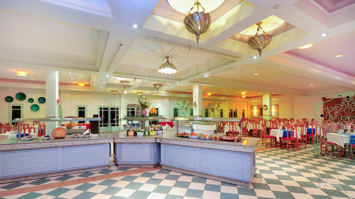All inclusive: Frühstück, Mittag- und Abendessen in Buffetform im internationalen Restaurant, 1 x pro Aufenthalt Abendessen im marokkanischen Restaurant (Reservierung erforderlich, Menüwahl), Snacks von 12:30-15:00 Uhr und nachmittags Kaffee, Tee, Gebäck und Sandwiches von 16:00-18:00 Uhr. Lokale alkoholische und alkoholfreie Getränke von 09:00-00:00 Uhr.